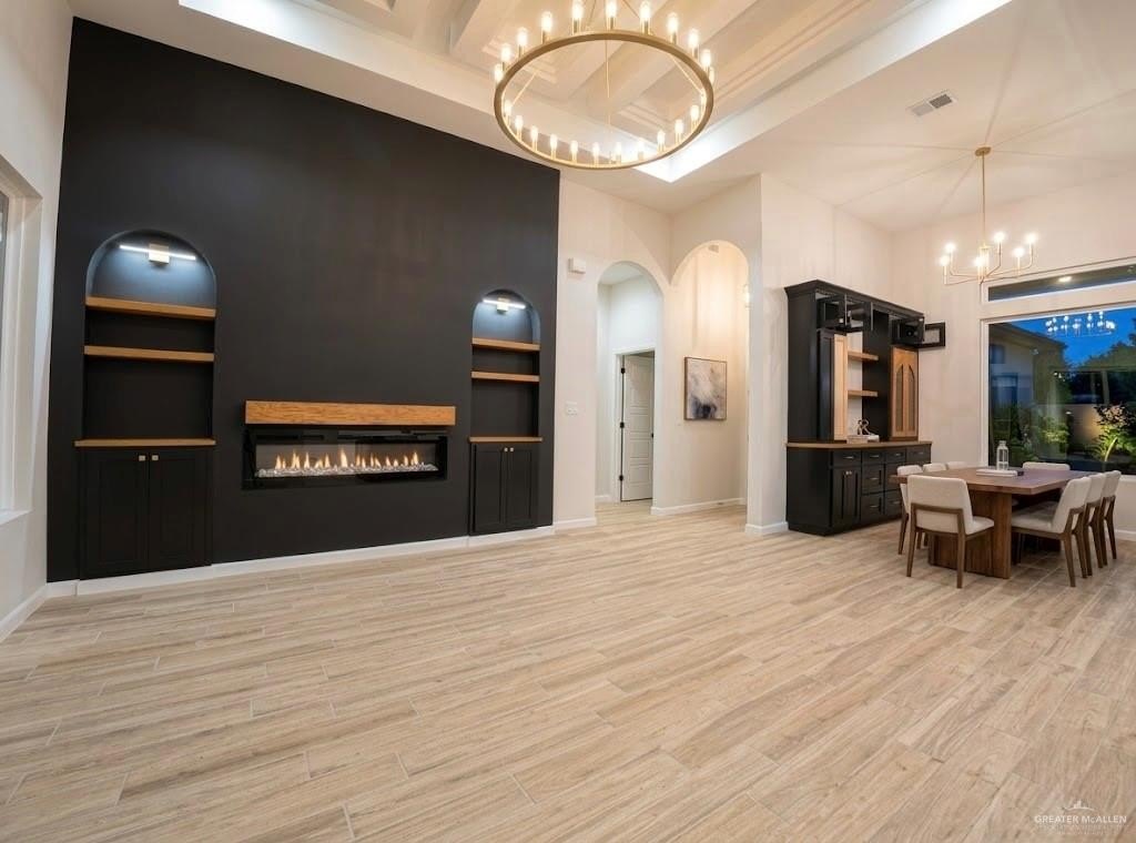 Property Description: Stunning brand-new construction 3-bedroom home featuring a sleek, high-contrast exterior and professional stone accents. The expansive open-concept interior boasts towering ceilings with intricate tray details, a designer wagon-wheel chandelier, and a floor-to-ceiling matte black feature wall with a built-in fireplace and illuminated arched shelving. The gourmet kitchen is a showstopper, complete with beautiful custom cabinetry, a massive central island, and a spacious walk-in pantry. High-end fixtures and elegant wood-look tile flooring run throughout this meticulously detailed home. This property is USDA loan eligible for a $0 down payment option for qualified buyers, and the seller is offering $5,000 toward closing costs. Schedule your private tour today!