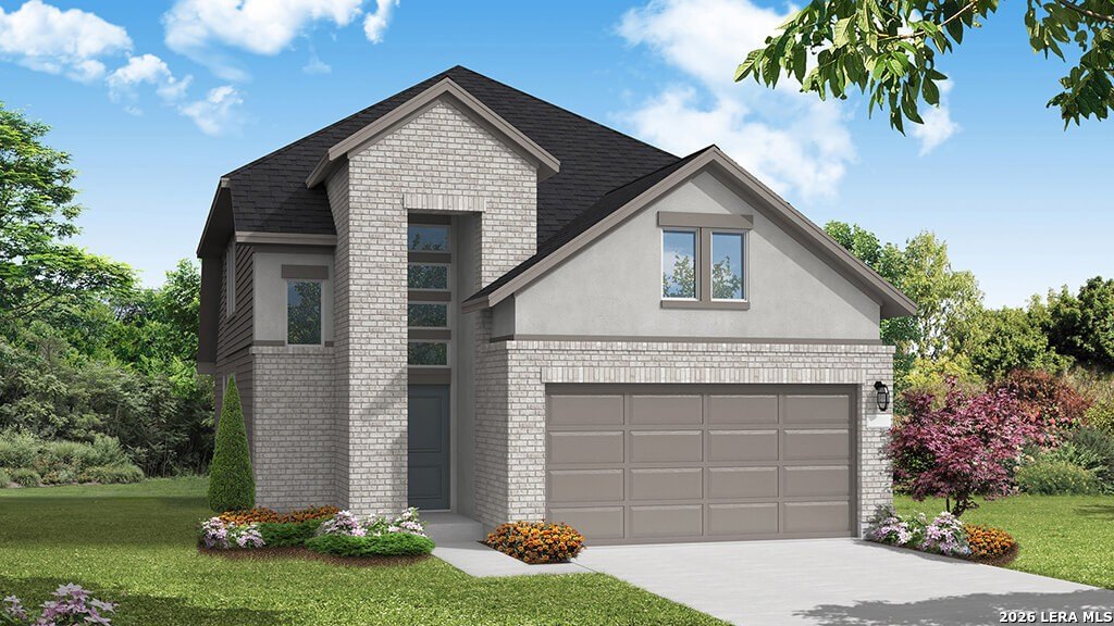 Step inside The Nicole plan, a two-story home featured in Applewood in San Antonio, TX. Featuring 2 classic front exteriors, 4 bedrooms, 3 full baths and a 2-car garage, this floor plan is sure to turn heads. The Nicole offers 2473 square feet of comfortable living and includes a full bathroom and bedroom located right off the foyer that is perfect for guests. Continue down the hall to find an open concept plan with the family room opening to a gourmet kitchen and dining room. The kitchen includes quartz counter tops, stainless steel appliances, shaker style cabinetry and a spacious corner pantry. A kitchen island overlooks the living room and includes a deep, single basin sink and a breakfast bar, perfect for fast mornings on the go. The wide, inviting staircase leads to a spacious game room, utility room, main bedroom suite, two secondary bedrooms with carpet flooring and spacious closets and third full bathroom. Your private main bedroom features an attached ensuite bathroom built with plenty of storage space, a walk-in shower and a separate water closet for the toilet. The grand walk-in closet is a stand-out feature of The Nicole floor plan, complete with plenty of windows for natural lighting. Additional features of The Nicole include sheet vinyl flooring in entry, living room, and all wet areas, quartz counter tops in all bathrooms, and full yard landscaping and irrigation. This home includes our HOME IS CONNECTED base package. Using one central hub that talks to all the devices in your home, you can control the lights, thermostat and locks, all from your cellular device.