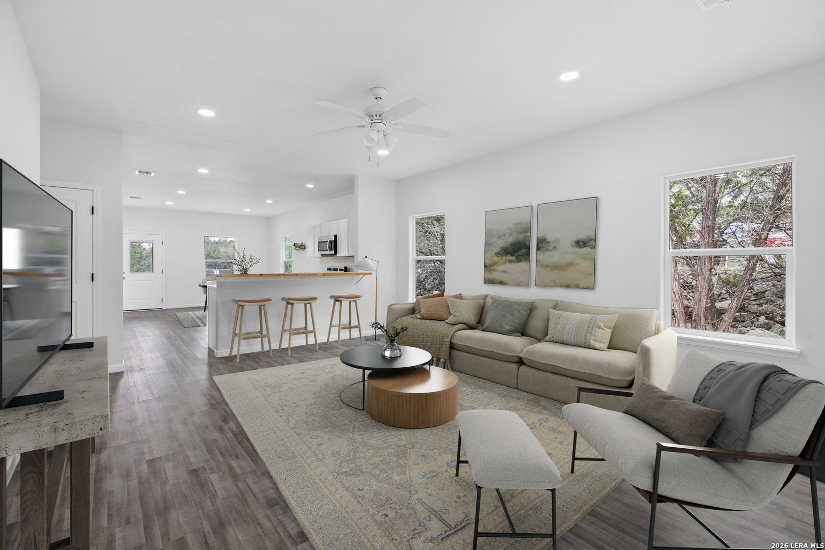 Step into The Tobin floorplan at Redbird Ranch in San Antonio, TX, a single-story home featuring 3 bedrooms and 2 bathrooms. The Tobin also offers 2 classic exterior with siding, a 1-car garage and 1412 square feet of comfortable living space. The Tobin features an open-concept layout that blends seamlessly to create the perfect every day space designed with you in mind. An elongated foyer leads you to the kitchen and dining space before flowing into a grand living room. The kitchen features quartz countertops, gleaming stainless steel appliances, shaker style cabinets and an eat-in bar that overlooks the dining area. Your main bedroom suite is located off the living area toward the back of the home and includes a walk-in closet and a relaxing bathroom space. The ensuite bathroom includes a single vanity sink with a spacious quartz counter top, shaker style cabinets and combined shower and bathtub. You’ll find quality carpet and spacious closets in all of your secondary bedrooms, located off the front foyer of the home. Use these rooms as offices, playrooms or other bonus spaces. Head out the back door located off the living room to find a fully landscaped yard with a state-of-the-art irrigation system. Additional features include sheet vinyl flooring in entry, living room, and all wet areas, quartz counter tops in all bathrooms and our HOME IS CONNECTED base package. Using one central hub that talks to all the devices in your home, you can control the lights, thermostat and locks, all from your cellular device.
