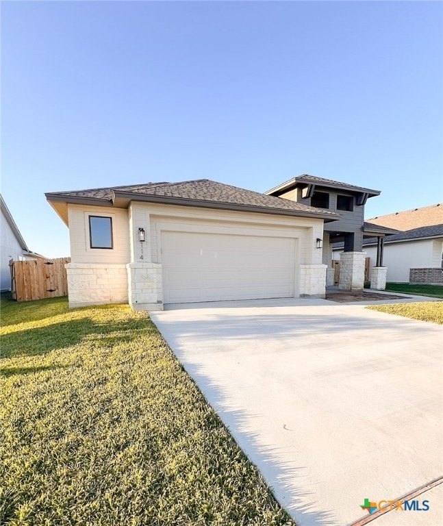 Property Description: Discover the epitome of modern luxury with this exceptional newly built home by Steve Klein Custom Builder. This exquisite 4 bedroom, 2 bath is located in highly sought after TerraVista neighborhood. Thoughtfully designed and meticulously crafted, this Texas Modern Prairie floor plan offers unparalleled blend of style and comfort that is sure to impress. Step into the heart of the home, where you can entertain with ease in the open family room, offering eye-catching vaulted ceiling flooded with natural light and adorned with vinyl wood plank flooring. This spacious kitchen awaits, boasting custom cabinets, designer backsplash, quartz counter-tops, over-sized kitchen island for additional seating and built-in stainless steel appliances, creating a culinary sanctuary that's as functional as it is beautiful. Retreat to the lavish primary suite, featuring a vaulted ceiling and large Euro walk-in shower, double vanities, and a spacious walk-in closet with built-in shelves for optimal organization. Three additional bedrooms offer ample space that will allow you to create a relaxing environment for guests and family members to stay awhile, sharing a second full bath featuring an over-sized vanity and tub/shower combo. The over-sized covered backyard patio is perfect for al fresco dining or simply enjoying the outdoors. In addition, this property comes with a landscaping package, providing extra curb appeal. Other modern amenities include a security system, Smart Home package, fully fenced backyard, and energy-efficient Lowe-E windows, ensuring comfort and sustainability. Homeowners can expect peace and quite with the luxury of living in Victoria's premier community with easy access to some of the best schools in the district and major shopping centers. Schedule an appointment today to check out all that this house has to offer!