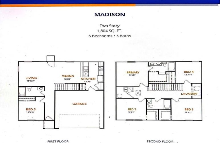 Property Description: The Madison plan is part of our liberty series and boast 5 beds & 3 baths with a 2 car garage and over 1800 ft. it even has a bedroom on the main level! Estimated completion will be in . What an incredible value!
