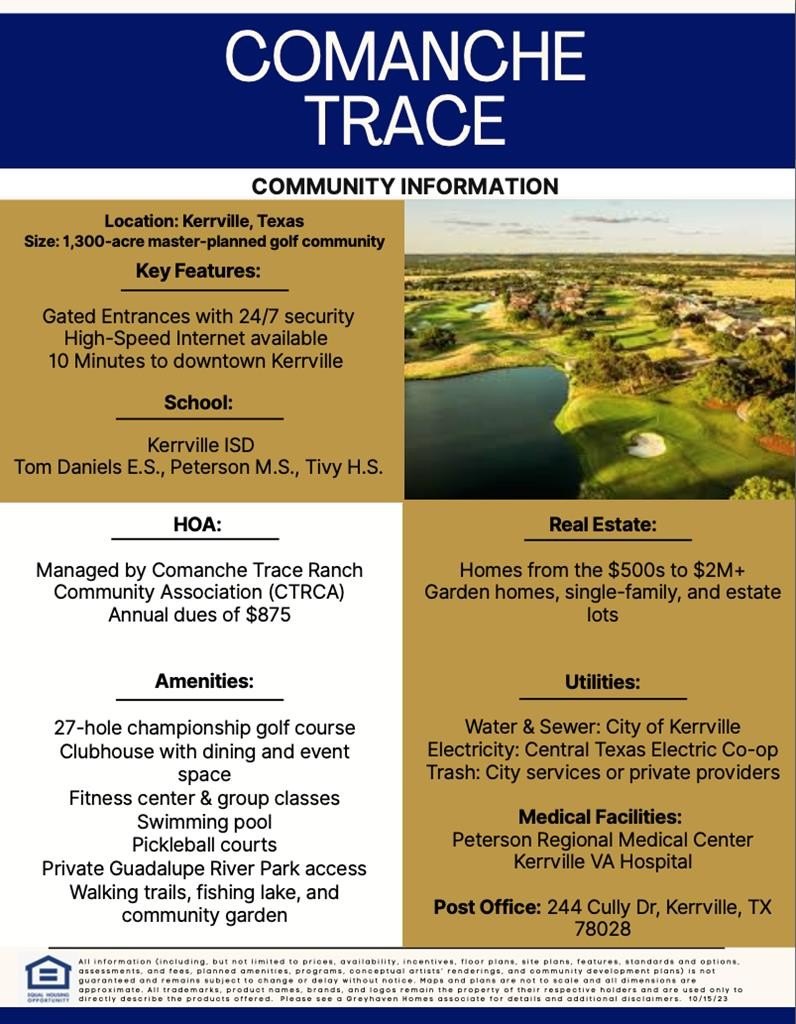 Property Description: ASK ABOUT OUR CLOSING COST INCENTIVES! Welcome to Comanche Trace, a premier 27-hole championship golf community where luxury meets lifestyle. Estimated for completion in January, this stunning one-story home features 4 spacious bedrooms, 3 bathrooms, and a dedicated Golf Cart Garage, perfect for golf enthusiasts. Step inside and discover an open-concept design with soaring ceilings, upscale finishes, and generous living areas designed for both comfort and entertaining. Tucked in the heart of Comanche Trace, you will enjoy access to a private Guadalupe River park, a stocked fishing lake, scenic walking trails, a community garden, and more. Optional golf and social memberships unlock even more ways to connect and enjoy resort-style living. Located just minutes from downtown Kerrville, this home blends tranquility, convenience, and modern Hill Country elegance. Do not miss the chance to make 2053 Toscano Way your own. Schedule your tour today and experience a lifestyle where every day feels like a getaway.