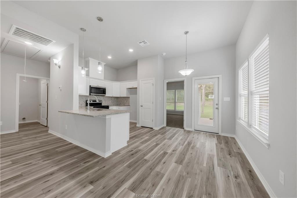 Property Description: HARD TO FIND AFFORDABLE NEW BUILDER HOME WITH A 4 BEDROOM, 3 BATH FLOORPLAN! LARGE LOT CLOSE TO ATM RELLIS CAMPUS AND DOWNTOWN BRYAN. The 4th BEDROOM has its own private bath and could be another Master, MIL Suite or Game-room. 10 FOOT CEILINGS, DOUBLE PANE ENERGY EFFICIENT WINDOWS, OPEN CONCEPT WITH Tile KITCHEN BACKSPLASH WITH GRANITE IN THE KITCHEN AND BATHS, THE MASTER BATH FEATURES A HUGE WALK IN SHOWER WITH BEAUTIFUL TILE WORK. THE BEDROOMS HAVE CARPET AND THE FARMHOUSE VINYL PLANK IN THE DINING AND LIVING ROOM AREAS. 2 INCH BLINDS, LARGE EATING BAR, TEXAS STAR FRONT DOOR, UPGRADED LIGHTING AND CABINETS, REMOTE CONTROL CEILING FANS, MEDICINE CABINETS IN THE BATHS, EXISTING TREES, SPRINKLER SYSTEM AND LARGE PRIVACY WOOD FENCED YARD! ADDITIONAL HOUSES FOR SALE NEXT DOOR! CALL FOR YOUR PRIVATE TOUR TODAY.