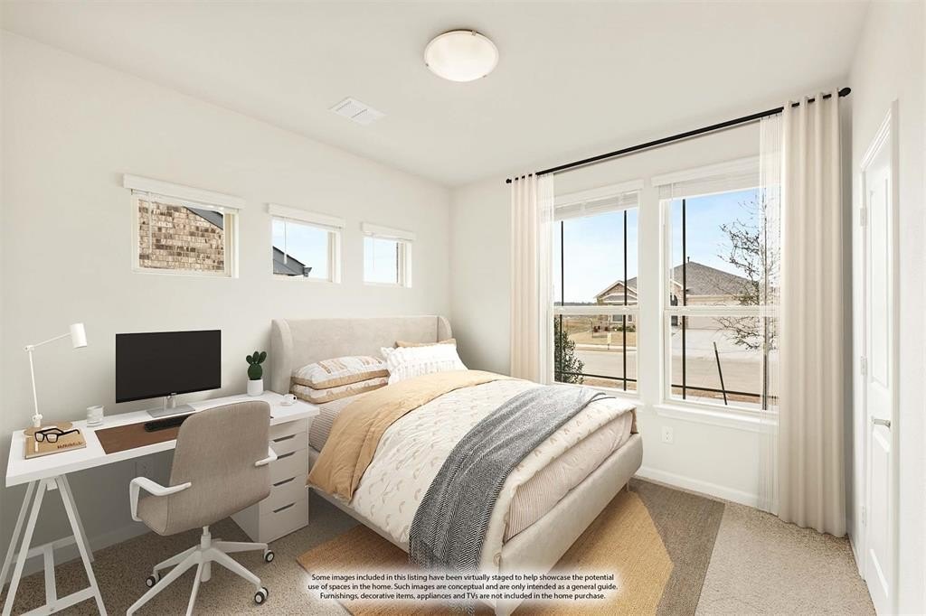 Property Description: NEW! NEVER LIVED IN! Expected to be ready in October 2025, the Gardenia plan from Bloomfield Homes offers 4 bedrooms, 3.5 bathrooms, a private study, a second living area upstairs, and an open-concept layout with useful design features. Close to Community Middle School! Gorgeous curb appeal created from a modern brick and stone accented facade complemented by an 4-Lite glass front door. The main floor centers around a bright, modern kitchen with Level 3 quartz countertops, a subway tile backsplash extended to the ceiling, a gas cooktop, stainless steel appliances, matching glass vent hood, pendant lighting, and a walk-in pantry. The island opens directly to the living and dining areas, with clear sightlines across the space and wood-look tile flooring extending throughout. Just off the garage entry, a built-in mud bench adds everyday function. Tucked at the front of the home, the study is enclosed with glass French doors. Primary Suite is located downstairs and includes a Deluxe Bath with a tiled shower, soaking tub, dual sink vanity, and a walk-in closet. The upstairs game room provides a second living space surrounded by 3 bedrooms and 2 full baths—one shared, one private to Bedroom 4. Every bedroom has a walk-in closet, and upgraded carpet keeps everything soft underfoot. Additional details include tile upgrades, full gutters, uplighting at the front elevation, coach lighting on a smart switch, pre-installed TV outlets, and a covered rear patio with a gas stub. Located in Grand Heritage with access to a community clubhouse, pool, fitness center, trails, and more. Visit Bloomfield today to make it yours!