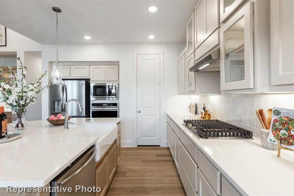 Property Description: Highland Homes presents our largest single story plan offered at Heritage Ranch, The Monet! The Monet offers 4 Bedrooms, 3 Baths, 2 Car Garage, Covered Patio and a Home Office on a lot backing to green space. This plan offers stunning features to include Vaulted Ceilings in the Family Room, Raised Ceilings in the Primary Bedroom, 8 foot doors, and large windows throughout! The Gourmet Kitchen includes custom cabinets to the ceiling, built-in appliances, quartz countertops, gas cooktop, trash can drawer, and so much more! All this on one of the best lots in Heritage Ranch backing to a green space!