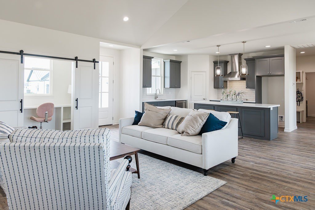 Property Description: JW Moore New Construction. Discover a beautiful mix of modern comfort and farmhouse charm in this stunning 4-bedroom, 2-bath home from JW Moore! Located on a spacious one-acre lot just outside the city limits, this property is in a charming neighborhood with no HOA fees, making it the perfect retreat. As you step inside, you will be impressed by the open-concept design, high ceilings, and luxurious details throughout. The heart of the home features an elegant kitchen with quartz countertops, a center island, and plenty of space for entertaining. The master suite is a true spa-like retreat, complete with a walk-in tile shower that is perfect for relaxing after a long day. This home also includes three additional bedrooms, a dedicated pocket office, and a beautiful bathroom, ensuring everyone feels right at home. Step outside to enjoy the expansive backyard and covered porch. You will appreciate the metal roof and the close proximity to shopping and restaurants, all without the burden of city taxes. This home is ideal for entertaining, relaxing, or simply enjoying wide-open spaces. Experience the ultimate in peaceful country living with the convenience of city amenities just minutes away.