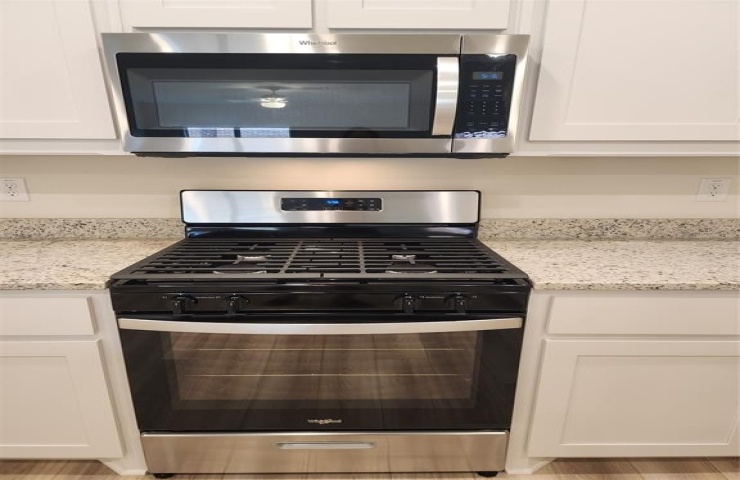 The heart of the home is a gorgeous gourmet kitchen, open to the living space. It boasts gleaming white granite countertops, elegant wood cabinetry, and a full suite of stainless steel Whirlpool appliances, including the REFRIGERATOR. This effortless flow is ideal for hosting guests or keeping an eye on family while you cook. A convenient half bath completes the main level.