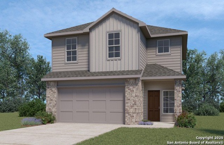 Property Description: Welcome to The Emma, a two-story home located in Applewood in San Antonio, TX. This floor plan offers 2 classic exteriors, 2-car garage, and a full yard landscaping and irrigation package, ensuring that your home looks it's best every single day. Inside this 3 bedroom, 2.5 bathroom home, you'll find 1700 square feet of living space. The entry opens to grand family room before flowing into the kitchen and dining area with an open floorplan concept. The gourmet kitchen includes granite counter tops, shaker style cabinetry, stainless steel appliances, large breakfast island, and spacious pantry. Head up the stairs to find the main bedroom suite, all secondary bedrooms, the laundry room, and a second full bath. The Emma layout is perfect if you love entertaining downstairs and relaxing upstairs. The private main bedroom features an attractive ensuite with plenty of shelving space and shaker style cabinetry. A spacious tiled walk-in shower, separate door for your toilet, and large walk-in closet provide all the space and convenience you need. Additional features of The Emma floor plan include sheet vinyl flooring in entry, living room, and all wet areas, granite bathroom countertops, and a covered back patio (per plan). This home includes our HOME IS CONNECTED base package. Using one central hub that talks to all the devices in your home, you can control the lights, thermostat and locks, all from your cellular device.