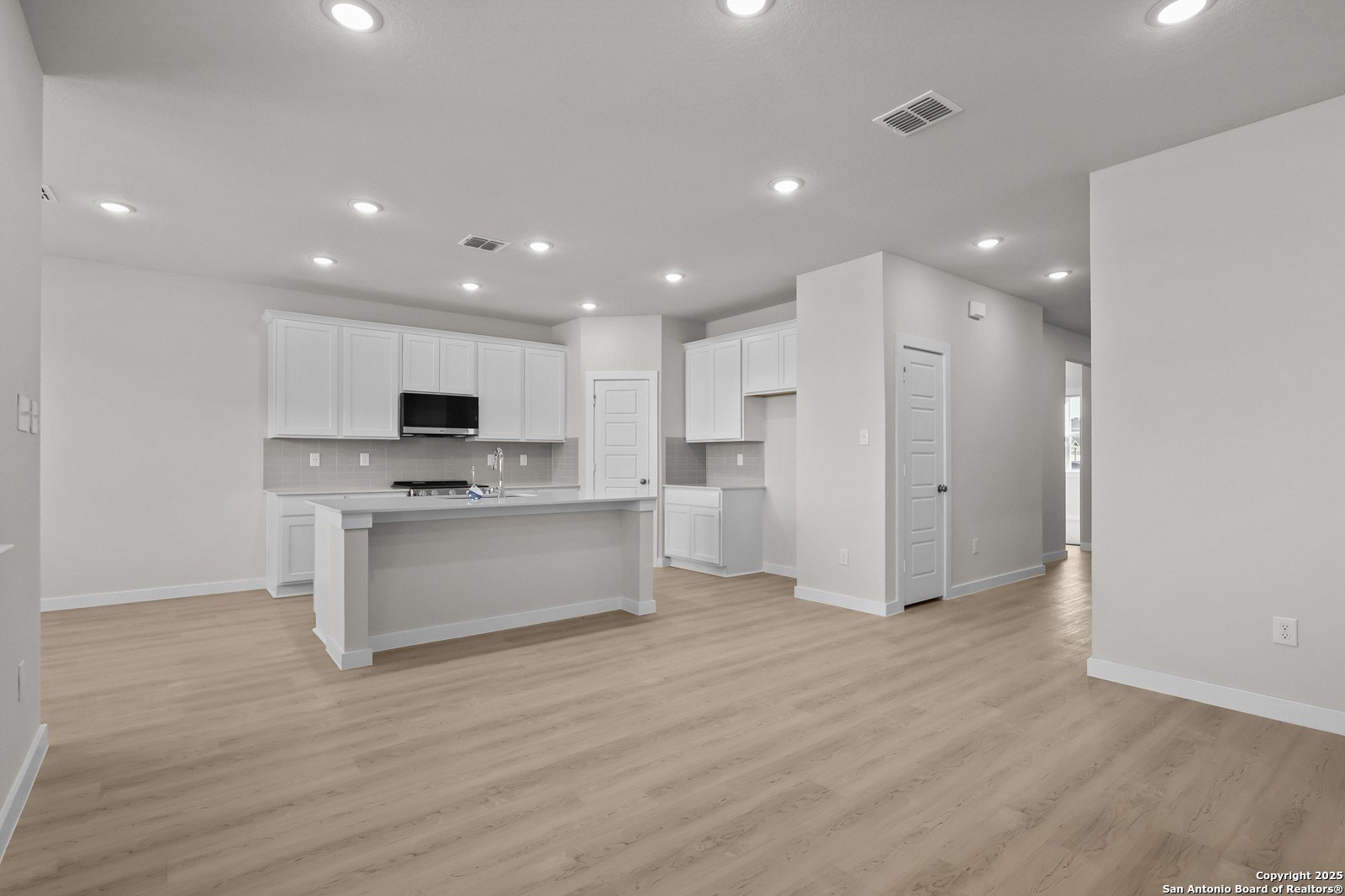 Property Description: The Blanco at Cinco Lakes offers a seamless one-story layout, designed for comfort and convenience. Mingling comes easy in the open-concept great room, which integrates a dining area, living space, and a kitchen complete with an island and corner pantry. The room effortlessly extends to a covered patio for indoor-outdoor living. Two bedrooms, located at the front of the house, share a full bathroom, while the primary suite enjoys a private location towards the back of the home. The primary en-suite bathroom features a dual-sink vanity, dedicated linen closet, and spacious walk-in closet, creating a peaceful retreat. A full laundry room and large 2-bay garage complete this convenient, yet comfortable home. Additional home highlights and upgrades: Corner Lot White kitchen cabinets, quartz countertops and backsplash 4" baseboards throughout home Luxury "wood-look" vinyl plank flooring in common areas Stainless-steel appliances Soft water loop upgrade Primary garden tub and shower Quartz countertops and modern rectangular sinks in bathrooms Landscape package with fully sodded yard and irrigation system Keyless entry Exceptional included features, such as our Century Home Connect smart home package and more