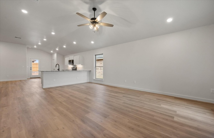 Property Description: Buy NOW and get up to $8,000 Use-It-Your-Way Cash! This charming 1,550 sq. ft, 3-bedroom, 2-bath home welcomes you with an all-brick exterior covered front entry and includes sprinkler and sod in the front yard. The open concept is ideal for family gatherings, with a spacious living and dining area. The kitchen peninsula provides additional seating options with plenty of counter space and stainless-steel LG appliances. The primary suite boasts a large walk-in closet complete with ample built-in shelves. The covered back patio is perfect for relaxing and enjoying the beautiful West Texas evenings.