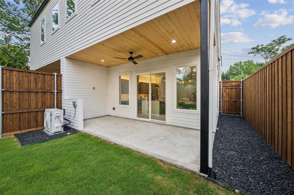 soaking tub in the primary bath. Tall sliding doors open to the inviting backyard, surrounded by an 8-foot privacy fence.