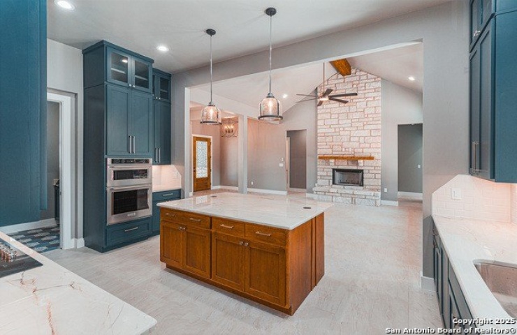 Property Description: OPEN HOUSE: Saturday, November 1st, 1-4pm! Stunning New Home on 1.64 Acres in the esteemed Eden Crossing community, Privately Situated in a Unique & Desirable location: on a cul-de-sac & bordering larger acreage tracts! Enjoy the best of Texas Country Living, with the convenience of Fiber Internet and a 30-minute commute to San Antonio. Thoughtfully designed, this newly crafted residence boasts numerous upgrades, including the attached Oversized 3-Car Garage, Spacious Front Porch & Back Patio, a Soothing Color Palate, and 3 Full Baths! The focal point of the Great Room is the Grand Floor-To-Ceiling Fireplace, ready to host special times together as the cooler season approaches. Dream Island Kitchen includes an abundance of custom cabinetry in two-tone finish, with chic matte black hardware, accented by the Stainless Steel KitchenAid Appliances, and sleek Quartzite Counters.  Don't miss the generous pantry w/extra cabinetry! The Master Retreat showcases views of the wooded surroundings, and offers a luxury bath: dual sinks, free-standing tub, walk-in shower, and a roomy closet. Spectacular Laundry Room: Cabinetry + Sink, and deco tile floor in laundry room & pantry! The 3rd full bath is designed w/door to patio, great for outdoor activities or future pool. All-tile flooring (no carpet!), Quality Finishes throughout, Builder 1-2-10 year Bonded Warranty for peace of mind. Tranquil country ambiance on the expansive back patio ... Exceptional!