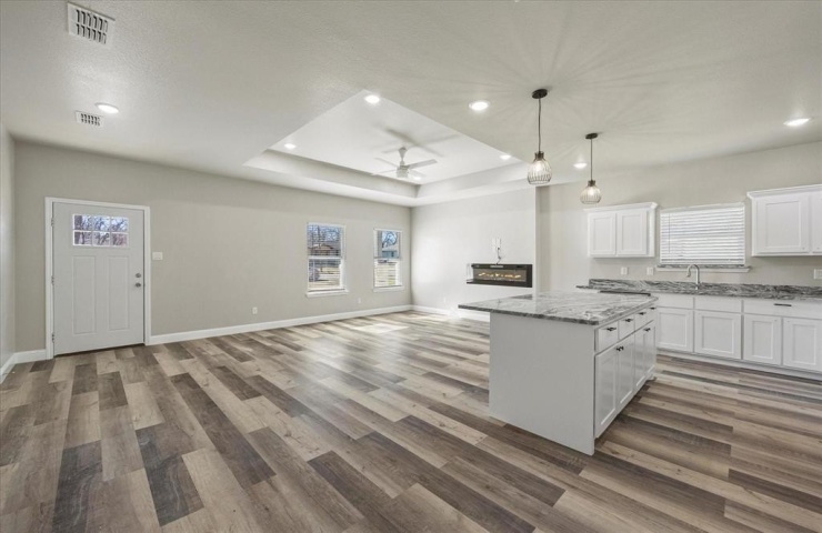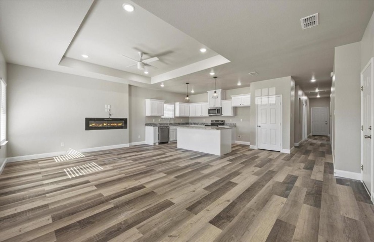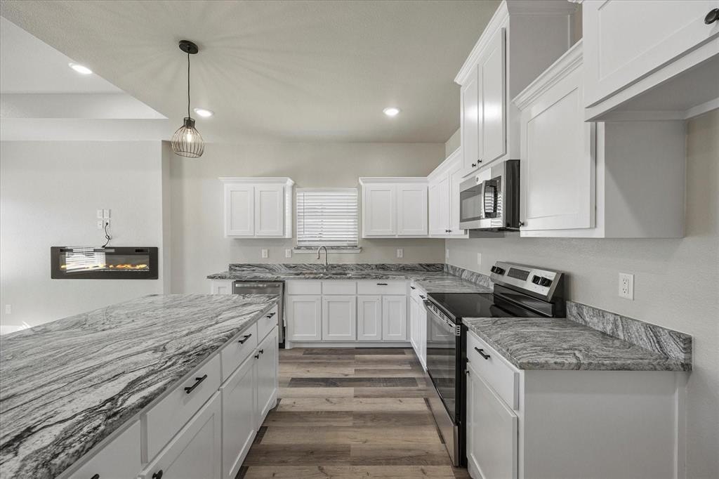 Property Description: New construction abundant with modern touches such as decorative lighting, electric fireplace in the living room, tray ceilings in the living room and master BR. Open concept living with luxury vinyl flooring throughout the main area providing a modern look with low maintenance. The spacious kitchen features beautiful custom cabinetry, a large kitchen island, high-grade granite countertops. Master bedroom has high tray ceilings, walk-in closet, ensuite bathroom with double vanities and a large tiled shower. Covered front porch and a large backyard with a covered patio for cooking out or relaxing. Easy access to I-30, shopping, dining. This house offers it all!