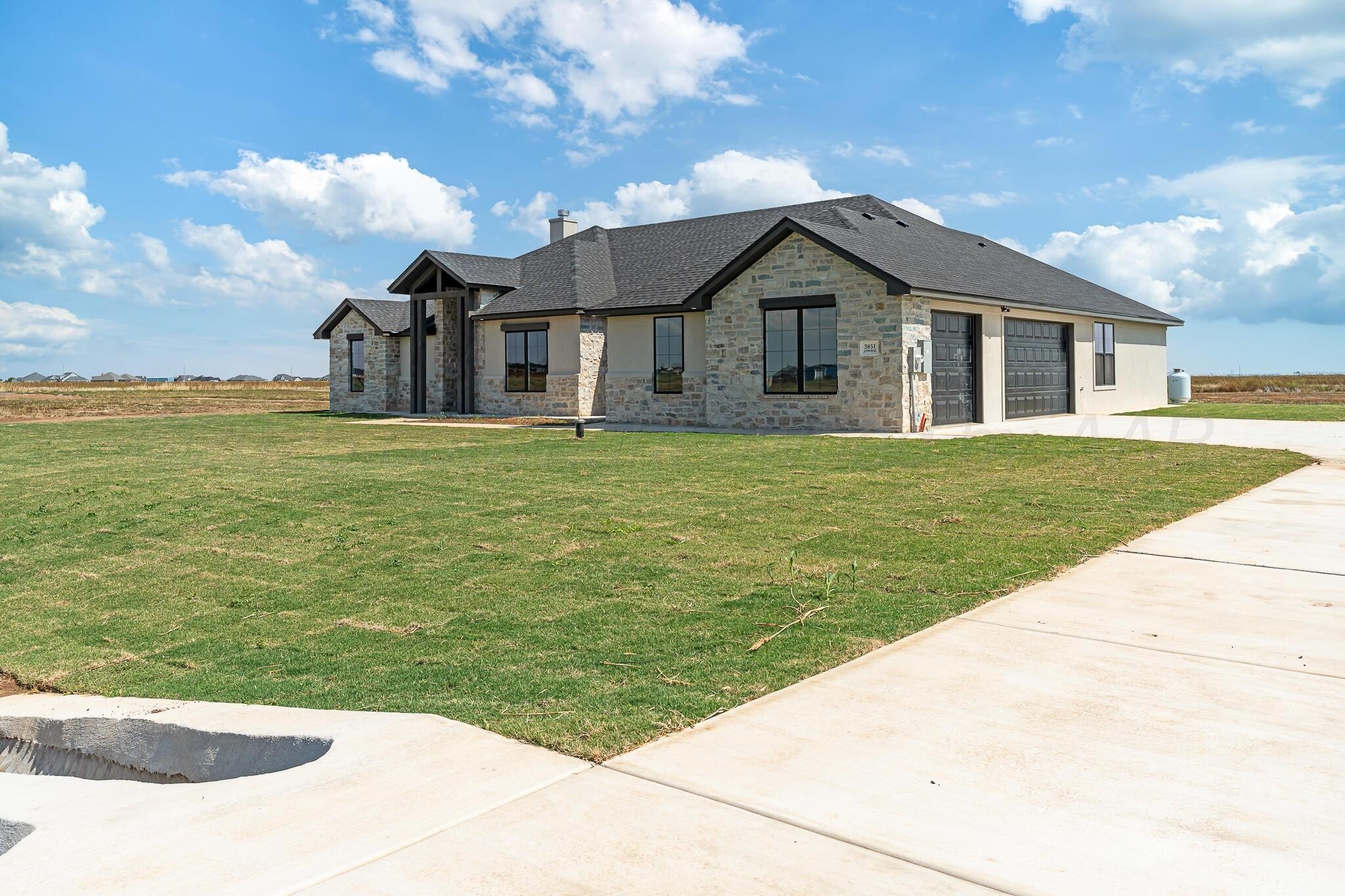Property Description: Nestled on a spacious 1-acre lot, new construction by Jadon Homes. This stunning home boasts 4 bedrooms and 2 full baths with a charming stone and stucco exterior. The property features a 3-car garage, spray foam insulation, and a Carrier heating and air system for optimal comfort. The kitchen is equipped with a Kitchen Aid appliance package including double ovens, an oversized walk-in pantry with a convenient coffee bar, and Mi window package. The master suite is secluded for privacy, while the guest bedrooms offer a separate retreat. The home also includes a large walk-through master closet leading to the utility room, an oversized kitchen island, and a smart pump for constant water pressure. Outside, enjoy the lush landscape package