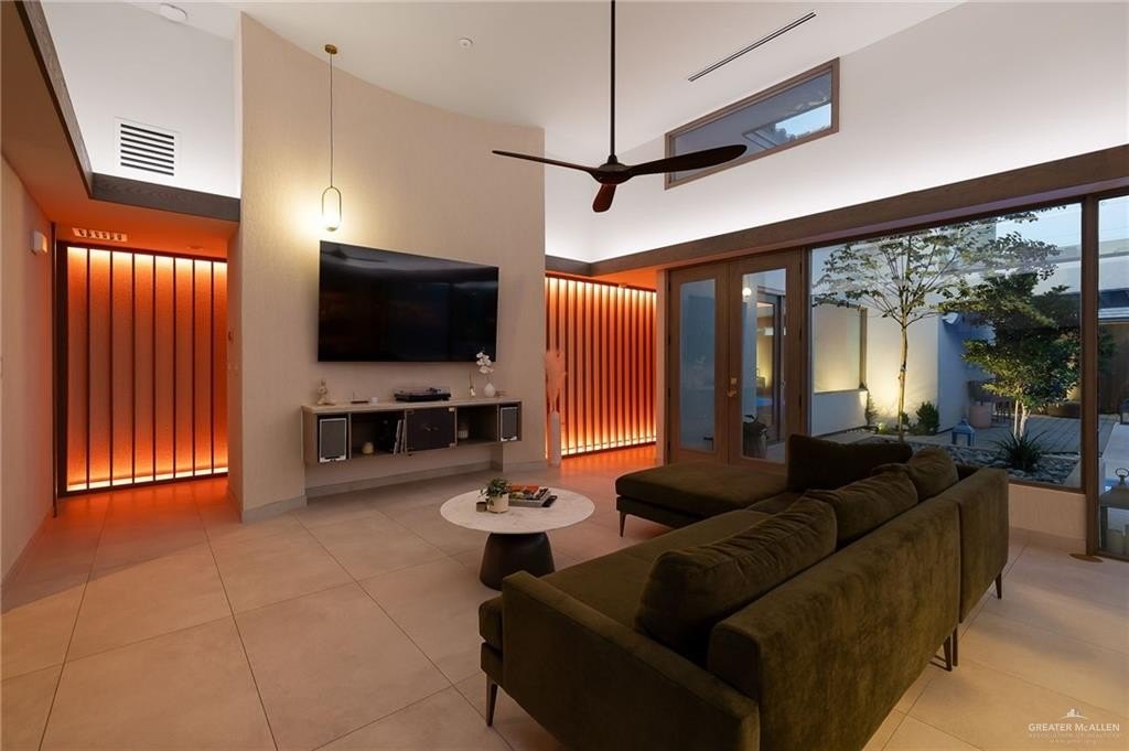 Property Description: Exceptional Modern Residence. This stunning home is defined by clean architectural lines and an open-concept layout that balances contemporary style with everyday comfort. Expansive windows and glass doors fill the interiors with natural light, seamlessly connecting the living spaces to the outdoor courtyard and sparkling pool. The gourmet kitchen and dining area showcase warm wood cabinetry, built-in appliances, and floating shelves, blending function with modern elegance. A neutral palette, refined finishes, and designer details create a timeless atmosphere of luxury throughout. Outdoors, the private courtyard design offers a tranquil retreat, complete with a pool ideal for entertaining or relaxation. With 3 bedrooms, 3.5 bathrooms, and a private theater room, this is an exceptional home where elevated design meets effortless living.