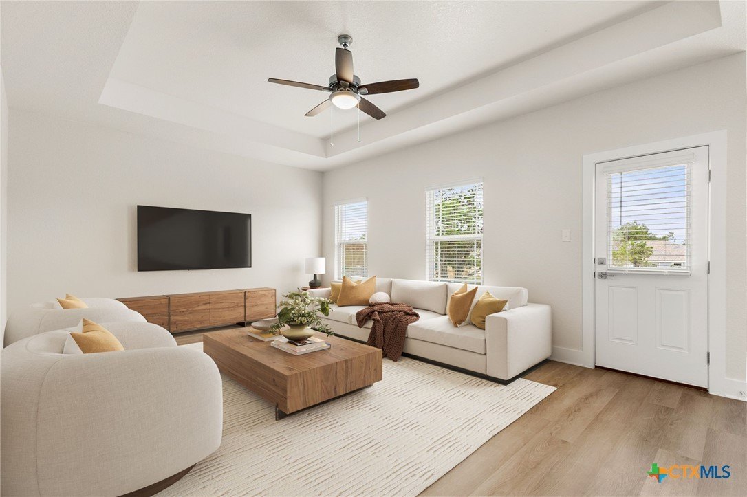 Property Description: Impressive 3 bedroom, 2 bathroom new construction home, skillfully crafted by Stellar Built, LLC. A plethora of high-end upgrades adorn this residence, including exquisite granite countertops in the kitchen and bathrooms, complemented by stainless steel appliances and 42" cabinetry adorned with modern hardware. The kitchen is a culinary haven, boasting a generously sized island illuminated by elegant pendant lighting. The master bathroom exudes opulence, featuring a spacious tiled walk-in shower that invites relaxation and rejuvenation. Throughout the home, you'll discover thoughtful amenities like mini blinds, a 2 car garage with garage door opener, and a charming covered front porch. The open-concept design is enhanced by the warm ambiance of recessed lighting. Step outside onto the oversized back patio, where you can bask in the outdoors, surrounded by a beautifully landscaped yard with full sod in both the front and back. The home offers easy access to HWY 281 and is in close proximity to Canyon Lake. The neighborhood boasts direct access to the river and lake, featuring boat ramp 11, and a private river park for water enthusiasts. Residents can also enjoy community amenities such as a pool, sports courts, and more, making this an ideal place to call home. Situated in a prime location, indulge in a picturesque journey, exploring quaint neighboring towns, and embarking on some sightseeing or treasure hunting in antique shops. Discover the charm of local wineries nearby, hike along the Canyon Lake Dam or through the breathtaking Gorge, or paddle your way through the Guadalupe River. As night falls, immerse yourself in the rhythm of the outdoors at a captivating concert held at the Whitewater Amphitheater. Whatever your passions may be, this home caters to a wide range of interests. With convenient access to San Antonio, New Braunfels, Wimberley, and Austin, your options for adventure and entertainment are boundless.