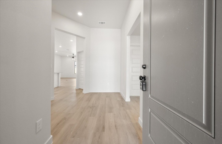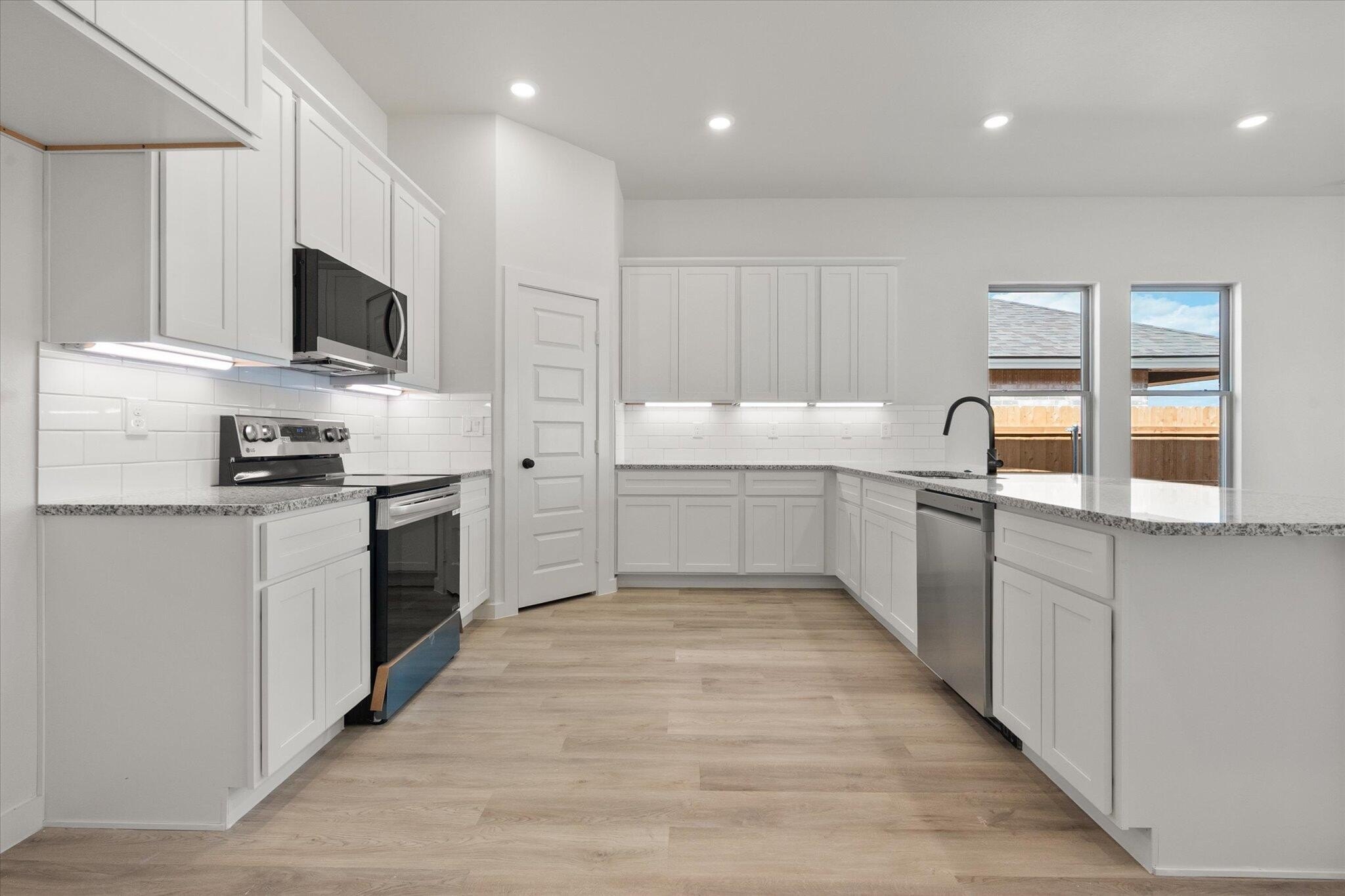 Property Description: Buy NOW and get up to $10,000 USE-IT-YOUR-WAY CASH! This beautifully designed home features a classic brick exterior and a covered front entryway, offering both curb appeal and comfort. Inside, luxury vinyl plank flooring flows seamlessly through the open-concept kitchen, living, and dining areas. The kitchen boasts granite or quartz countertops, a spacious peninsula with bar seating, stainless steel appliances, and a large enclosed pantry. Relax in the cozy living room by the corner brick fireplace, adding warmth and charm. The secluded master suite is a true retreat, featuring a drop-in tub, walk-in shower, his and hers vanities, and a walk-in closet with direct access to the utility room. A covered back patio provides a perfect outdoor space to unwind. Premium plumbing and lighting fixtures complete the home's sophisticated design.