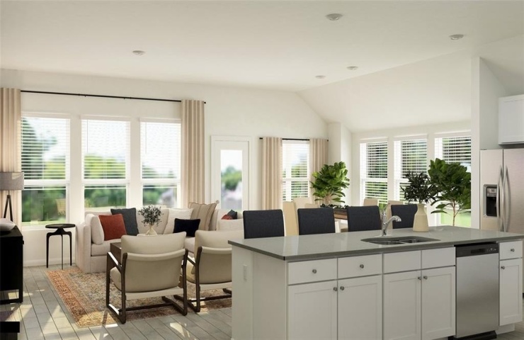 Property Description: This new two-story home is host to an inviting open-concept floorplan on the first level that combines the kitchen, living and dining areas to maximize interior space. A spacious covered porch offers seamless outdoor recreation and leisure. A secondary bedroom and convenient flex space are located off the foyer, and the luxurious owner’s suite is tucked away at the back of the home with a full-sized bathroom. Three additional bedrooms share the second floor with a flexible game room.