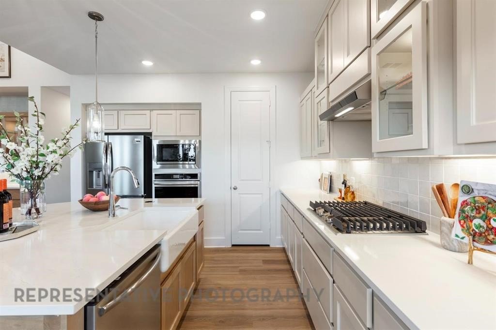 Property Description: Beautiful 1 story brick home with open concept living complete with Study. This home features family and dining room with vaulted ceiling with a fireplace. Secondary bedrooms with private vanities and a Jack & Jill bath. Kitchen features tile backsplash, gas cooktop, pantry and expansive quartz island. Primary bedroom is an oversized room that features a box window, large walk-in closet, shower and freestanding tub with double vanities. Enjoy entertaining on the covered patio.