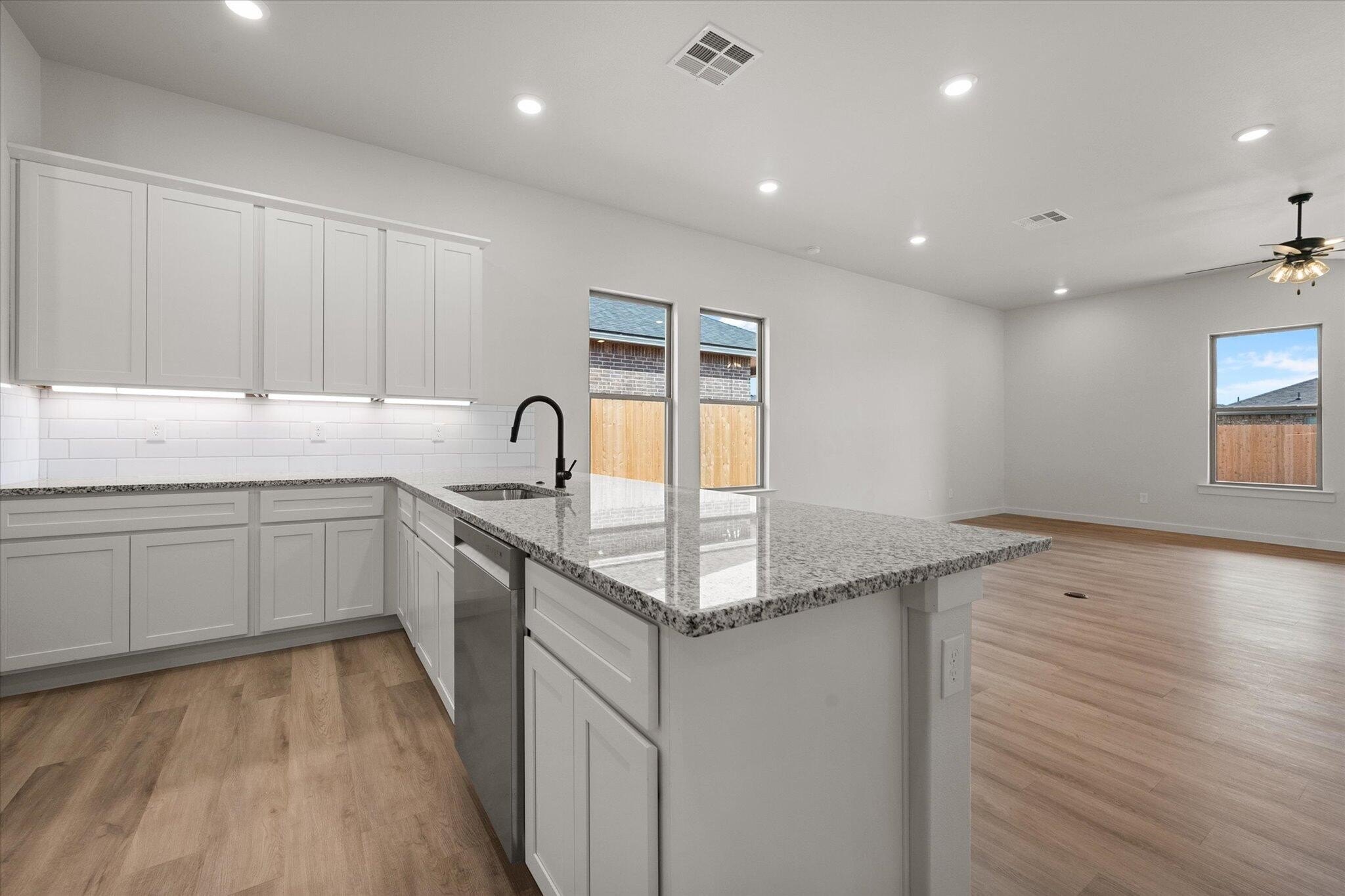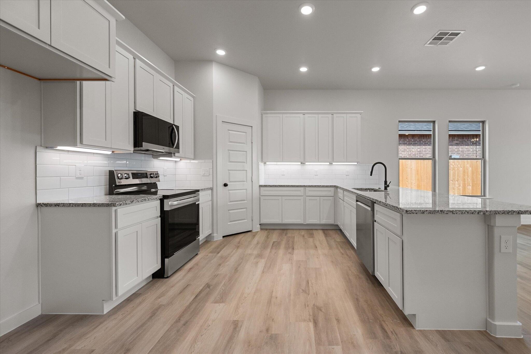 Property Description: Buy NOW and get up to $10,000 Use-It-Your-Way Cash! This beautiful home features a brick exterior with double columns and stone accents framing the covered front porch. Inside, luxury vinyl plank flooring flows through the open-concept kitchen, living, and dining areas. The kitchen includes granite or quartz countertops, a spacious peninsula with bar seating, stainless steel appliances, and a large enclosed pantry. The cozy living room boasts a corner brick fireplace. The secluded master suite offers a drop-in tub, walk-in shower, his and hers vanities, and a walk-in closet with utility room access. Enjoy the outdoors on the covered back patio. Premium fixtures complete this elegant home.