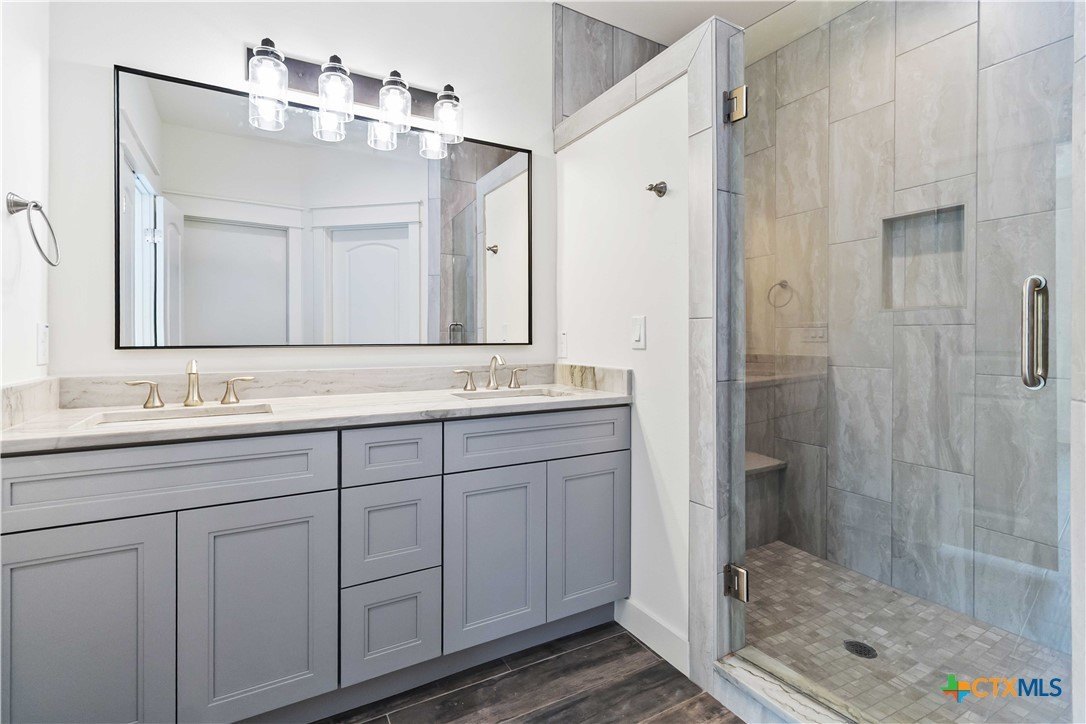 Property Description: This home is priced at a level rarely seen in Wimberley for new construction of this caliber and quality. Move-in ready, beautifully finished, and thoughtfully designed, it delivers Hill Country comfort with standout features and undeniable value. Set on a 0.238-acre cul-de-sac lot, the home welcomes you with stone accents, a stylish modern front door, and a private back patio-perfect for relaxing under Wimberley's renowned dark skies. Inside, the open-concept layout features 3 bedrooms, 2 full bathrooms, and upgraded tile flooring throughout-no carpet. The kitchen includes a stainless steel Viking vent hood, built-in microwave in the lower cabinets, walk-in pantry, and a spacious granite island with three pendant lights and additional seating. The builder's craftsmanship shines with tongue-and-groove niches in the living area and at the entry to the primary suite. The primary bedroom offers a peaceful retreat with an ensuite that includes a double vanity, framed mirror, frameless glass walk-in shower with custom tile and bench seat, private water closet, and walk-in closet. Secondary bedrooms include ceiling fans and tile flooring, and upgraded fixtures and craftsman-style trim are carried throughout. With Austin, San Marcos, and Canyon Lake just a short drive away, this property offers Hill Country living with city convenience - at a price point you don't see often in Wimberley. Rare opportunity. Real value. Ready now. Schedule your showing today. Some photos are virtually staged.