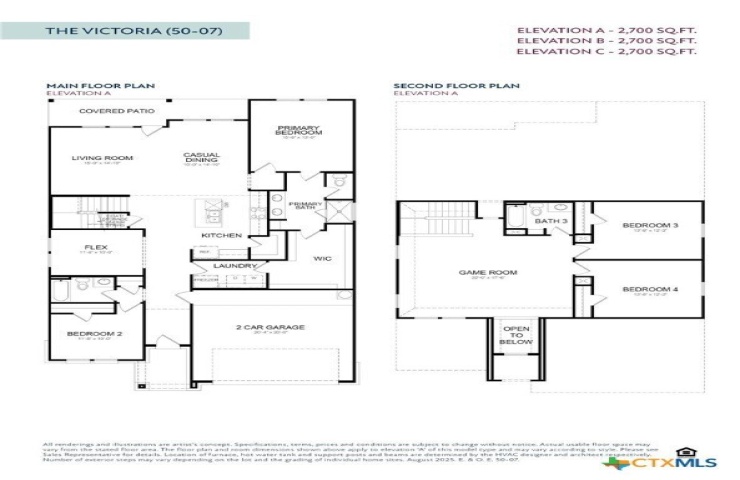 Property Description: Welcome to the Victoria floor plan, a spacious two-story home offering 2,700 square feet of modern living. This thoughtfully designed layout features 4 bedrooms and 3 full bathrooms, accommodating families of all sizes. The open-concept main floor includes a generous living room that flows into the dining area and a well-appointed kitchen, perfect for entertaining. The primary suite is conveniently located on the main floor and serves as a private retreat, complete with an en-suite bath and a large walk-in closet. Upstairs, you’ll find two additional bedrooms, a full bath, and an over-sized gameroom. Enjoy outdoor living on the covered patio, ideal for relaxation and gatherings.
