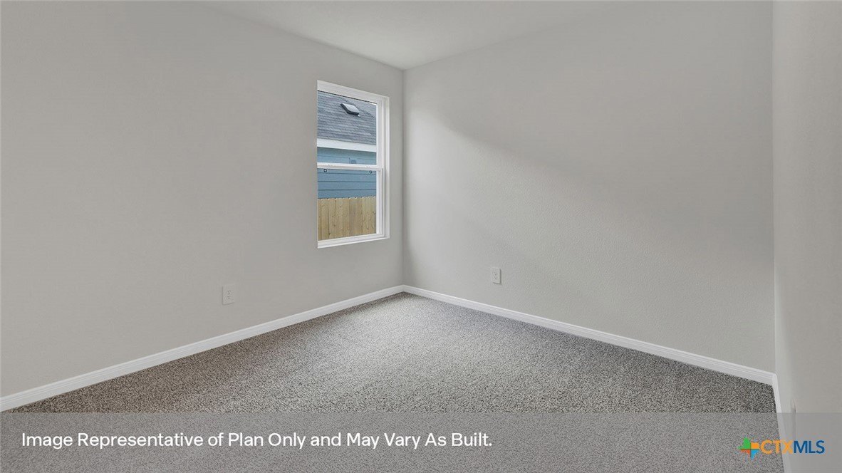 When you enter the home from the covered front porch, you will find a short hallway that leads to the secondary bedrooms, bathroom, and utility room. Bathroom 2 includes a tub/shower combination, and the bedrooms include a large closet with shelving. Whether you use these rooms for an office, child’s room or guest room, there is enough room for work and play.