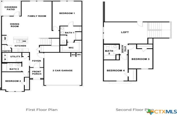 The first floor includes 2 bedrooms and 2 bathrooms. The primary bedroom is at the back of the home, off the family room, and includes an attached bathroom. This relaxing bathroom space features a 5’ walk in shower, double sink vanity, private toilet area with a door, and a walk-in closet. At the front of the home is a secondary bedroom, bathroom, and utility room. The secondary bathrooms include a tub/shower combination.