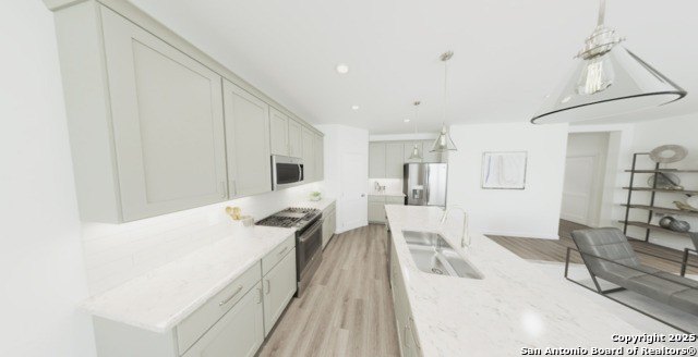 Property Description: This spacious two-story home is designed to meet the needs of today's modern family, offering the perfect balance of style, function, and comfort. With five bedrooms and three full baths, there's room for everyone to enjoy both privacy and togetherness. At the heart of the home, the gourmet kitchen features an island layout that flows seamlessly into the open family room and dining area-ideal for casual meals, entertaining, or everyday living. A walk-in pantry keeps everything organized and within reach, while large windows bring in natural light and offer peaceful backyard views. The private primary suite is conveniently located downstairs, creating a retreat all its own. The spa-inspired bath includes a walk-in shower, double vanities, and a generous walk-in closet. Also on the first floor, a secondary bedroom with easy access to a full bath provides a perfect space for guests or extended family. Upstairs, a generous loft anchors the second level, offering plenty of space for a game room, lounge, or study area. Each of the three additional bedrooms upstairs features its own walk-in closet, providing exceptional storage and personal space for everyone in the household. Step outside to the covered patio, where you can relax, dine, or entertain while enjoying the privacy of having no rear neighbors. A thoughtfully designed layout combined with details like walk-in closets, open rail accents, and durable flooring make this home as functional as it is inviting. With versatile spaces, modern finishes, and smart design, this home is built for both everyday living and lasting memories. This home is part of our Milan Collection-effortlessly chic with a modern European edge. Cool grays, smooth ceramics, and bold decorative accents create a gallery-like feel for artful living. It's sleek yet warm, refined yet welcoming, and always ready for quiet evenings or vibrant gatherings. Milan is where contemporary design meets everyday comfort in perfect harmony. This home is located in Hennersby Hollow, where convenience and family-friendly living come together. With Hwy. 90 and Jungman Rd. nearby, major employers like Lackland Air Force Base, Toyota, and Westover Hills Medical Center are within easy reach, along with SeaWorld, Alamo Ranch shopping, and downtown San Antonio. Community amenities include a resort-style pool with beach entry and lazy river, a playground, food truck area, and activity lawn for neighborhood events. Families also enjoy access to acclaimed Medina Valley ISD schools. At Hennersby Hollow, every day feels full of possibility.