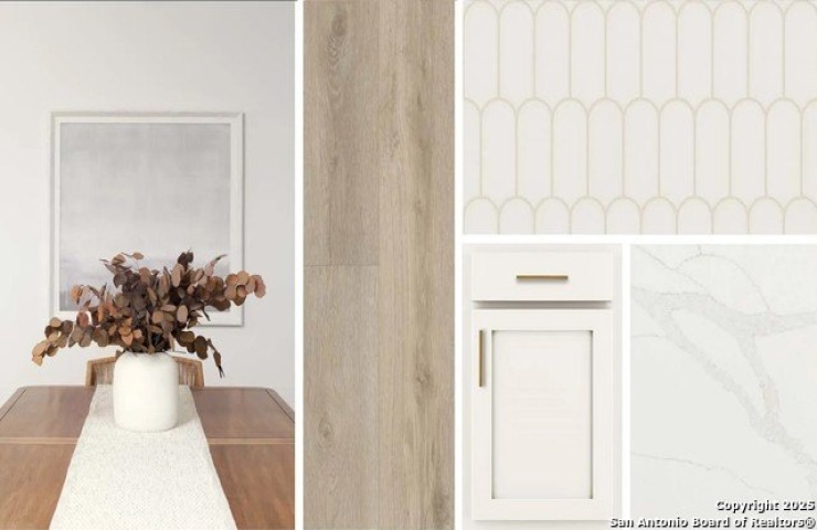Property Description: This beautifully designed single-story home offers the perfect blend of comfort, function, and modern style. From the moment you walk through the impressive 8' front door, you're welcomed into an open and inviting floor plan that's ideal for both relaxed living and effortless entertaining. The heart of the home is the gourmet-inspired kitchen, featuring a sleek island layout, built-in oven, self-cleaning cooktop, microwave, and spacious walk-in pantry-perfect for everything from casual meals to dinner parties. The kitchen flows seamlessly into the combined living and dining area, where natural light enhances the bright, airy atmosphere. For those who work from home or enjoy a quiet retreat, the private study with double doors creates the perfect space for productivity or creative pursuits. The primary suite offers a relaxing escape, complete with a ceiling fan, walk-in closet, and a spa-inspired bathroom featuring dual vanities and a spacious walk-in shower. Two additional bedrooms share a well-appointed full bath, making this home both versatile and family-friendly. Step outside to enjoy a covered patio and the peace of a private fenced backyard, perfect for outdoor dining, playtime, or simply unwinding in the fresh air. Additional features like ceiling fans throughout, vinyl flooring paired with plush carpet, vent fans, in-wall pest control, and plumbing for a water softener add to the home's convenience and ease of maintenance. With thoughtful details inside and out, this home offers the ideal balance of comfort and style for today's lifestyle.    This home is part of our Serene Collection-designed to bring balance, calm, and open space into everyday life. Muted earth tones and natural textures work together to create rooms that breathe and moments that linger. Serene is about slowing down, soaking in the quiet, and making space for what truly matters, one peaceful moment at a time.    This home is located in The Wilder, a community perfectly positioned with direct access to Loop 1604 and minutes from I-10. Enjoy easy commutes to major employers like Randolph Air Force Base, Amazon, and Brooke Army Medical Center. Planned amenities include a refreshing pool, playground, and cabana-ideal spots to relax and connect. The Wilder offers the perfect blend of convenience, lifestyle, and modern living.