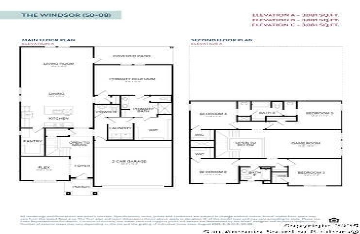 Property Description: The Windsor is a spacious two-story home offering 3,081 sq. ft. of versatile living space designed for all families. The main floor features a sleek kitchen with a walk-in pantry, a large dining area, and an open living room that leads to a covered patio-ideal for entertaining. A private primary suite is tucked away downstairs with dual vanities, a soaking tub, and a large walk-in closet. Upstairs, a central game room anchors four secondary bedrooms, each with their own walk-in closet for maximum storage. With three full bathrooms, a powder room, and a first-floor flex space perfect for a home office, this layout delivers both comfort and flexibility. A two-car garage, high ceilings, and "open to below" design add an elevated touch to everyday living.