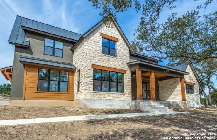 Property Description: OPEN HOUSE Oct 24th & 25th FROM 10AM-2PM. 2104099116 for gate access. Sitting on 1.02 acres in the heart of the Hill Country, this brand-new custom home blends modern comfort with timeless craftsmanship. Offering 4 bedrooms, 3 full baths, 2 half baths, and 3,258 SqFt of living space, it's designed to feel open, inviting, and perfect for both everyday living and entertaining. Step inside and you'll find a spacious layout with high ceilings, natural light throughout, and durable waterproof vinyl flooring that complements the home's clean, modern design. The kitchen and living areas are pre-plumbed for gas, giving you the flexibility to upgrade with a gas range, a cozy fireplace, and even a built-in patio grill. Some features you may not notice right away-but will appreciate every day-include:2 Trane AC units for year-round efficiency, Spray foam insulation throughout for energy savings, 80-gallon hot water heater, 3-car garage with electric car outlet,Durable metal roof for longevity and peace of mind. The back patio opens to sweeping views of your private acre, giving you plenty of room to create your own outdoor retreat.