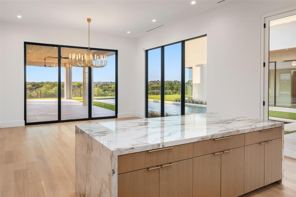 A private gated courtyard sets the tone, leading into spacious interiors where elegance meets innovation. Perched on a premier elevated lot, the home showcases sweeping panoramic views of Frisco.