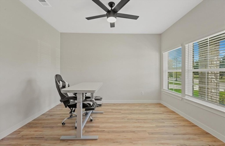 Property Description: Beautiful 3bd 3 bath open floor plan offers two stories of modern living. The main floor features a private study room, an open-concept kitchen with island and walk-in pantry, a spacious living room, and a dining area. The primary bedroom is also on the main floor, complete with a walk-in closet and attached bath with dual sinks and a walk-in shower. Upstairs, you'll find two bedrooms with walk-in closets, a full bath, and a versatile loft. A covered patio completes the home, perfect for outdoor living.Located in a vibrant new community near shopping, dining, and more!