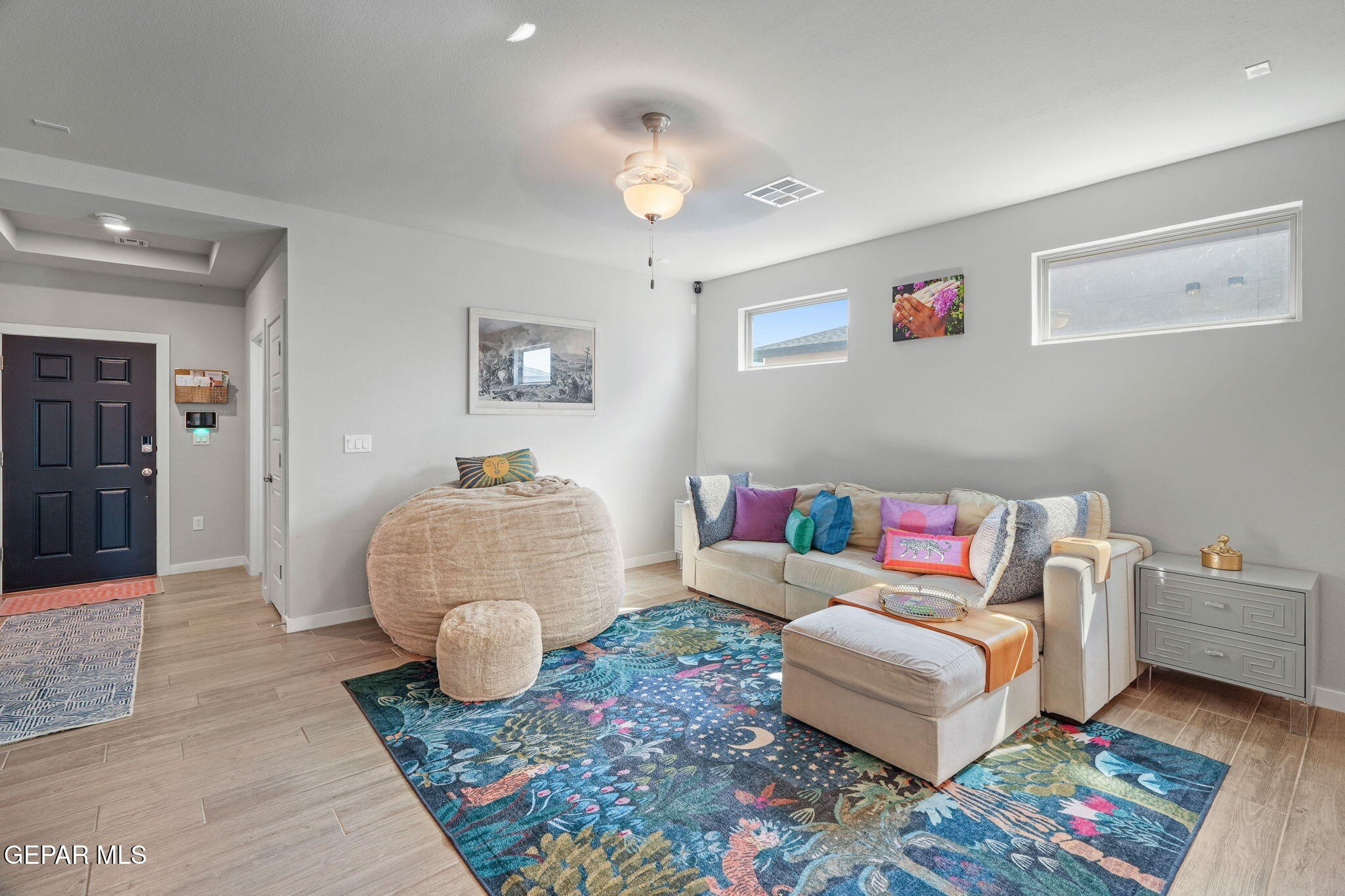 Property Description: Welcome Home! Step into comfort and style in this beautifully designed home in the desirable Tierra Del Este neighborhood! This nearly 1,800 sq ft single-story residence offers zoned bedrooms, providing privacy and function for families, guests, or remote work. This cozy home boast 4 bedrooms with 2 baths. The open-concept layout features a bright and welcoming great room that flows seamlessly into a modern kitchen with crisp white cabinetry, a large island, and spacious dining area-perfect for entertaining. The primary suite is thoughtfully separated and includes a his and hers walk-in closet and en-suite bath with dual vanities. Upgrades Include, a water softener system for improved water quality. A whole-home air filtration system to promote cleaner indoor air and a professionally landscaped backyard - ready for outdoor living and enjoyment. All this nestled in a quiet, growing community just minutes from major highways, top-rated schools, parks, and shopping.
