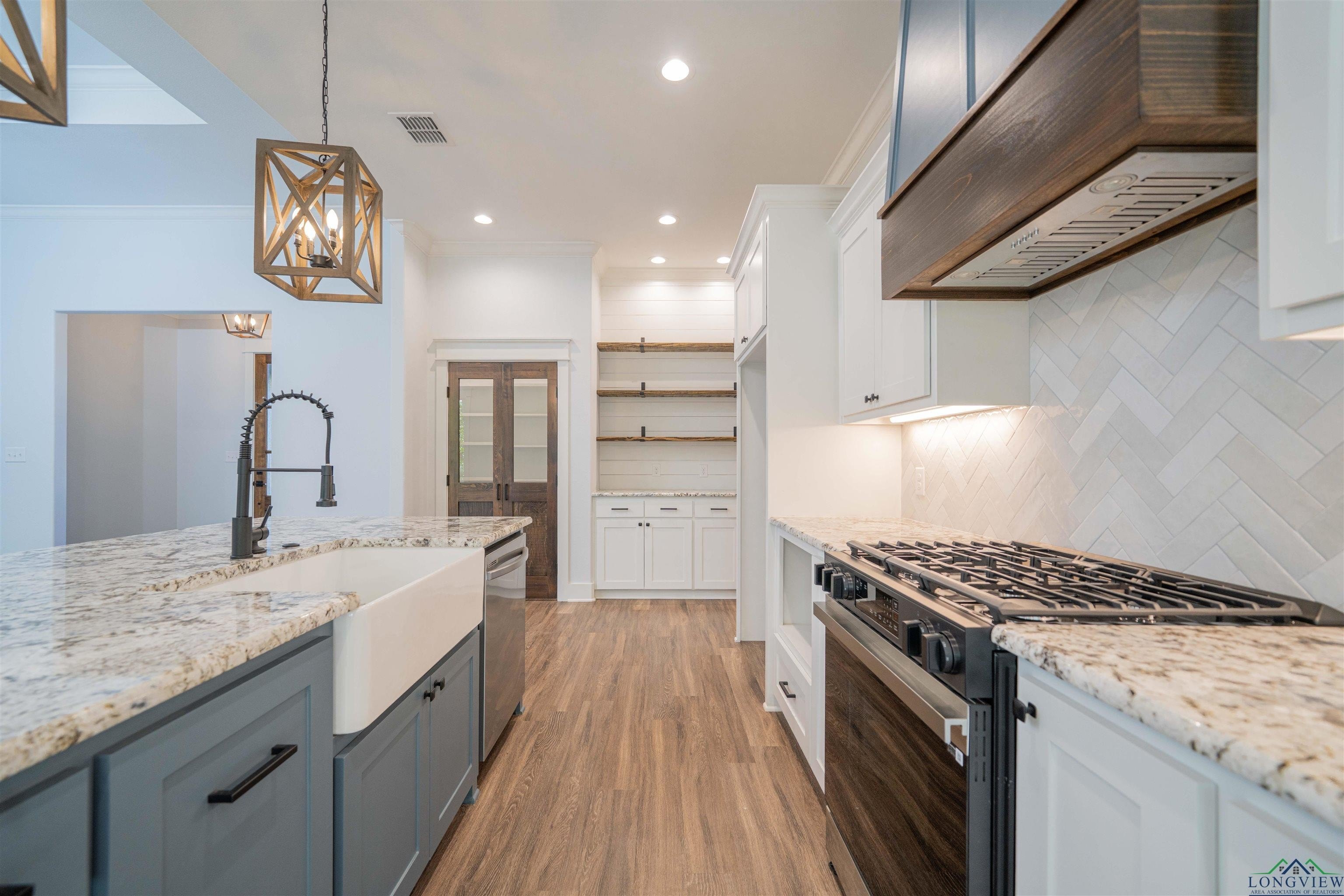Property Description: Welcome to this stunning new construction home located in the highly sought-after Hallsville ISD! As you step inside, you’re immediately greeted by an inviting open space featuring large, beautiful windows that flood the room with natural light, and a cozy fireplace surrounded by built-in shelves. The kitchen is a chef’s dream, offering granite counter tops, lots of storage and a spacious walk-in pantry. The oversized primary is a plus, complete with a luxurious bathroom featuring a large custom tile shower and soaking tub. Enjoy outdoor living on the covered patio overlooking the backyard, perfect for relaxing or entertaining, the back porch is set up for you to add your outdoor kitchen and entertain guests. The builder's attention to detail on this new construction home is phenomenal. Call or text today to schedule a private tour of this home, before its too late!