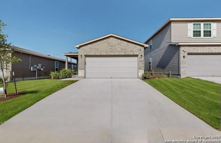 Property Description: Move in Ready single story, with brick elevation and welcoming front porch. Open floorplan with nine foot ceilings, with an open kitchen. Kitchen features an island, granite countertops, stainless steel appliances and 36" kitchen cabinets. Ceramic tile in main living areas and carpet in the bedrooms. Primary Bedroom has full bath with walk in shower. Exterior has no backyard neighbors and good sized backyard. Located just minutes from Lackland AFB, SeaWorld, shopping, dining, and more. This home has it all-plus a excellent price that makes it one of the best deals in the area! Schedule your showing today before it's gone!