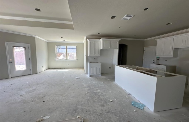 Property Description: NO HOA!! What other builders consider upgrades Arcadian Select Homes have made them standard features. This beautifully crafted home has a large open kitchen custom cabinetry with 42in uppers large granite island with undermount 50 50 sink and concealed trash cabinet. The stainless Whirlpool appliances make this kitchen a chefs dream Elevated ceilings with crown molding in living area single stage in kitchen, dining, entry and primary. Oversized 5.25 baseboards throughout. Ceiling fans with light in living and primary, guest bedrooms are wired as well. Luxury water resistant vinyl plank flooring in the main areas and hallway. Full security system. The grand entry way has a Speak Easy wood grain front door. Energy efficient windows throughout. Primary bathroom has fully tiled showers with accent flooring. The exterior is beautifully designed with brick and decorative stone. An insulated 3 car fully finished garage offers plenty of room and has neatly textured walls and baseboards. Encapsulated foam insulation for highest energy efficiency. A full sprinkler system takes care of the front landscaping 2 trees as well as the nice size backyard.