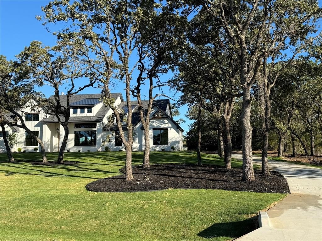 Property Description: Adorable white farmhouse with a modern twist. Gorgeous, treed lot with winding driveway on a slight hill. Very breathtaking. Country living with no HOA. Open floorplan with vaulted ceilings, island kitchen, large spacious pantry with a microwave built in. Luxury finishes in the kitchen as well as upgraded lighting. Primary bedroom looks out into trees making a peaceful spa like environment. Primary bath has double vanities and large walk-in closets. Mudroom has built in cabinetry, and the laundry room is huge with an abundance of cabinet space. Large outdoor living area you can sit and relax while looking out into nature. This lot is a serene, wooded piece of heaven.