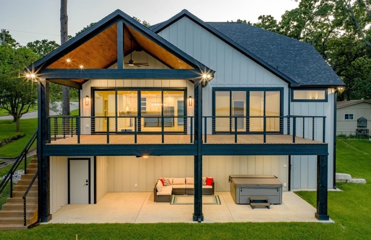 Property Description: Experience the perfect blend of comfort and elegance in this stunning home, designed for both relaxation and entertaining. Wood flooring flows throughout, leading you into a dream kitchen featuring gas cooking, a large island bar, quartz countertops, an ice maker, and a wonderful butlers pantry with a sink, microwave, and beverage center. The primary suite is a true retreat with glass doors that open directly to a lakeside deck. The spa-inspired bath offers a soaking tub, a rain head, and a body sprayer in the expansive shower. Hosting is a breeze with three spacious bedrooms and two large guest suites boasting double vanities. A versatile flex room can serve as a fifth bedroom, office or media space. Enjoy year-round living with a fabulous covered porch and open living area overlooking wide open water. An open deck plus a lower-level covered space with hot tub create the perfect setting for relaxing or entertaining family and friends. A double boathouse with an upper deck sits on deep water, offering both convenience and stunning views. Located in a VRBO-friendly area, this property is ideal as a primary residence, vacation home, or investment opportunity.