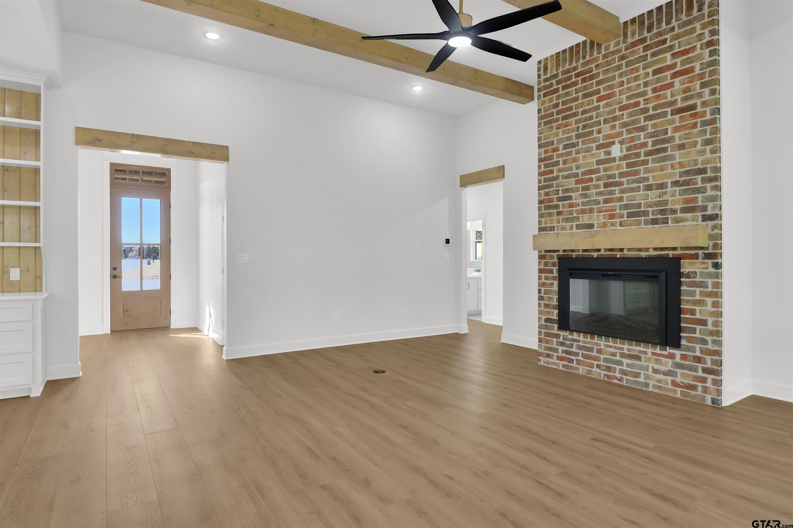 Property Description: Stunning Transitional-style home nestled at the end of a cul-de-sac for the perfect Country Living feel. 17560 Sugar Bluff Ln, located in Sugar Ridge Estates! Just gorgeous! Custom features galore! Open floor plan, 4 bedrooms, 2.5 baths, and oversized 2 car garage with double garage doors. Split bedroom layout with natural light pouring in throughout the home. Kitchen has beautiful quartz, large island, 36” professional range, apron sink and custom cabinets! Furniture-style open shelving unit with wood accent. Gold finishes and fixtures and SS appliances. Prep area off the kitchen leading to the large walk-in Pantry with butcher block countertops and tons of storage. Mudroom and 1/2 bath off the garage leading to the Laundry that connects to one of the master closets…yep, there’s TWO closets in the master! Master Bath is to die for! Freestanding tub and walk-in shower with custom tile work and gold finishes! Electric fireplace in the Family Room with floor to ceiling brick surround. Large windows across the living and dining room provide lots of light and great view of the beautiful backyard! Family room leads to the large covered porch with great privacy provided by mature trees. Carpet in bedrooms, high-end LVP flooring throughout main area, and tile in baths. Spray foam in the attic and energy efficient windows! No HOA, two street curb-and-gutter subdivision in Flint, Texas. Close to Loop 49, Hwy 155S and Lake Palestine. You must see this New Happy Home.