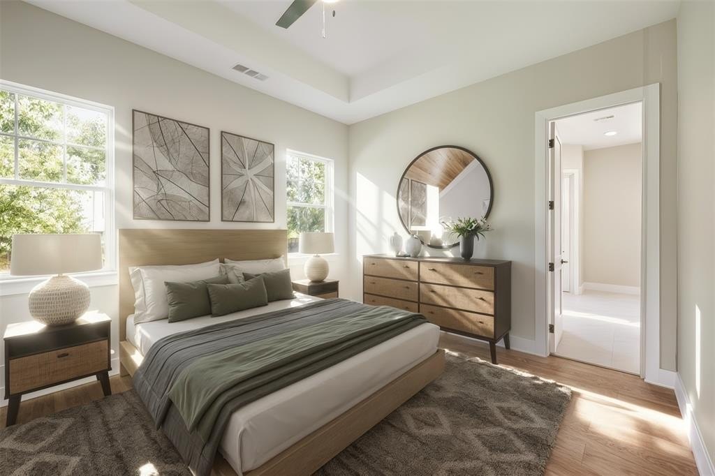 Property Description: Welcome to Chateau Concorde, a newly built Transitional Craftsman in the heart of Grapevine. Thoughtfully designed with 4 bedrooms, 2.1 baths, and a 3-car garage, this 2,239 sq. ft. home blends timeless architecture with modern functionality. Step inside to engineered hardwood floors and light-filled interiors framed by large craftsman-style windows. A private home office sits just off the entry, while the kitchen, dining, and living areas offer seamless flow for both daily living and entertaining. The chef’s kitchen features marble countertops, a 4-burner gas cooktop, double ovens, custom cabinetry, a coffee bar, walk-in pantry, a center island, and oversized sink overlooking flowering trees in the backyard. The back door opens to a covered patio, prepped with gas, plumbing, and electrical for a future outdoor kitchen. The first-floor owner’s suite is a private retreat, complete with a soaking tub, walk-in privacy shower, double vanity with quartz countertops, and an expansive closet with three tiers of storage and custom built-ins. Upstairs, three spacious bedrooms share a full bath with dual vanities and a tub-shower combination, while the landing provides attic access for convenient seasonal storage. Enjoy outdoor living with a covered patio. Additional highlights include a half bath serving the main level, large-format tile selections, energy-efficient systems, a well-appointed garage with abundant outlets, and organized utility access.