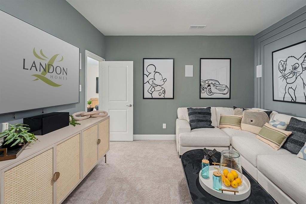 Property Description: Gorgeous Landon Homes in PROSPER ISD and minutes away from PGA Frisco with exceptional upgrades with 4 bedrooms, 4 baths, 1 living room, 1 dining room, media room, game room, 2 car garage and covered back patio! All bedrooms have walk in closets. Quartz counter tops in kitchen and all baths, stainless steel ENERGY STAR GE appliances, gas stove, paint grade soft close cabinets, 5 panel contemporary front door, decorative ceiling fans. Plush carpet in bedrooms and upstairs, vinyl wood look flooring in rest of home. Privacy fence with two gates, full sprinklers, upgraded landscape package, full gutters and more! Programmable Thermostat, Insulated Interior Corners, Fortiflash Waterproof Membrane around windows, PEX Plumbing, Vinyl Low E Tinted Glass Windows, 16 SEER HVAC System. HOA includes front and side yard maintenance, alley maintenance and pesticide control. Photos are representational only and are not of the real property. Available for move in END OF NOVEMBER 2025.