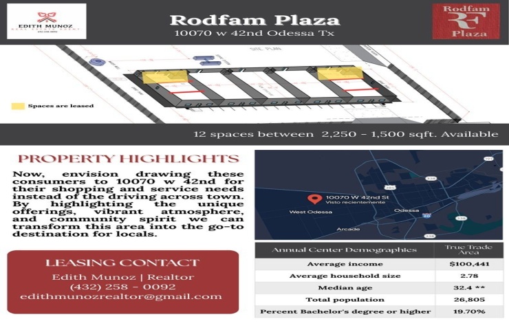 Property Description: Attention Entrepreneurs! A fantastic opportunity to establish a thriving business in a vibrant community with excellent traffic. Don't miss out! units 600 sq ft, up to 4000 sq ft $28.00 NNN
