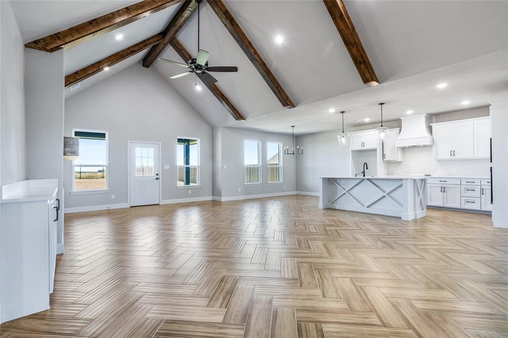 Property Description: Step inside this brand new, stunning 4-bedroom, 3-bath Brahman Ranch home, where a gorgeous iron front door leads to a great room with wooden beams and a decorative fireplace. The gourmet island kitchen shines with granite counters, custom cabinetry, stainless steel appliance package, electric cooktop and walk in pantry. The thoughtful floor plan is perfect for modern living, featuring a secluded primary bedroom suite on the main floor. The spa-like primary bath is an indulgence in luxury, with dual custom-cabinetry sinks, a standalone soaking tub with elegant tile surround, and a spacious walk-in shower. Two additional bedrooms on the first floor offer convenience, while a private fourth bedroom and full bath upstairs serve as an ideal guest retreat or bonus space. Outside, the covered patio overlooks a generous backyard, and a relaxing view of the neighborhood pond - creating a perfect setting for outdoor living.