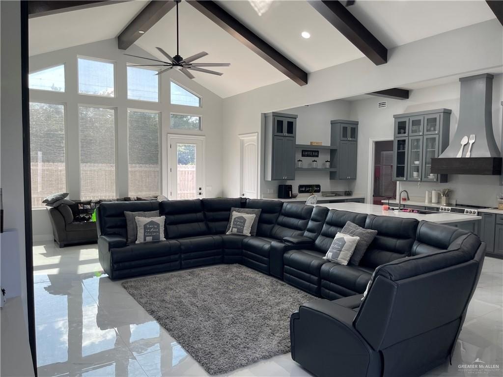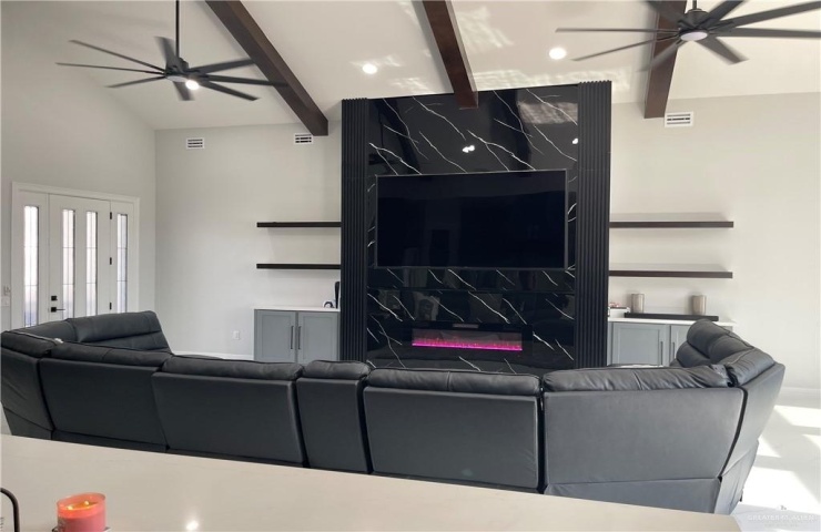 Step into luxury offering a perfect blend of style, space, and comfort. Located in a desirable Alton neighborhood, and sought after Sharyland school district. This stunning home features 4 bedrooms, 3 full bathrooms, and upscale finishes throughout. Property Highlights: Grand 17-foot ceilings in the living room for an open, airy feel. 12-foot ceilings throughout the rest of the home. Spacious and functional open-concept layout Custom built-in entertainment center with modern fireplace