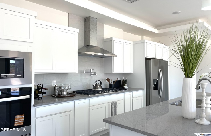 Property Description: Stunning New Home in desirable Metro Verde Community just minutes away from Red Hawk Golf Club! Contemporary Modern Open Concept with 4 bedroom, 3 baths with many energy efficient features! Gourmet kitchen with timeless white shaker cabinets, large island with stainless sink, generous walk in pantry, modern quartz counters throughout. Primary bedroom is zoned with a spacious walk-in closet, shower with tiled walls up to ceiling w/ a rain shower & additional shower head. Extensive double vanities with make up counter, a luxurious stand alone soaking tub. Conveniently includes a linen closet for additional storage in primary bathroom . 4th bedroom includes a full bath & could be used for a mother-in-law suite or a great guest room! 2 car garage has tankless water heater, plumbed for future water softer w/upper shelves for more storage. Easy access to restaurant's, schools & Golf course! Best of all Low NM Taxes!