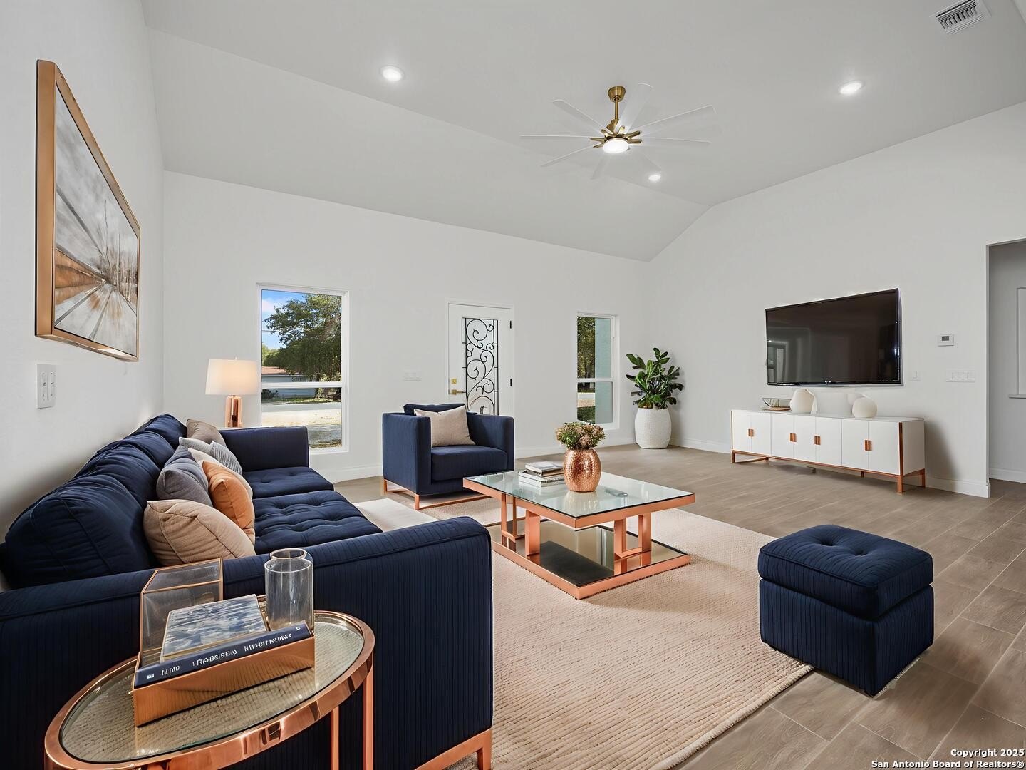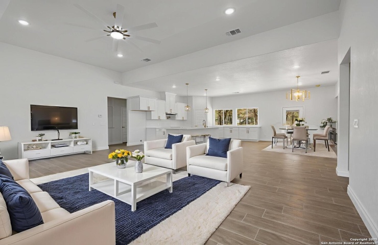Property Description: New construction custom home in Elmendorf! This beautiful 1-story features 4 bedrooms, 2.5 baths, and 2,141 sq. ft. of living space on a .48-acre lot. Enjoy an open floor plan with high vaulted ceilings, custom finishes, and walk-in showers. The home is pre-plumbed for a water heater and includes a covered back patio plus a shed with electrical-perfect for storage or a workshop. Experience country living with no HOA and with convenient access to highway 37. Quality craftsmanship and modern design throughout!