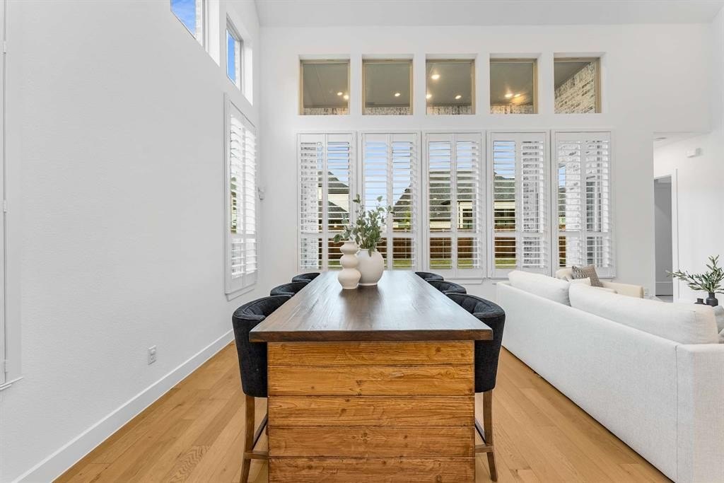 Property Description: Better Than New in Mosaic! Built by Highland Homes, this property combines thoughtful design with elevated finishes and functionality. With 5 bedrooms, 5 full and 2 half baths, the home features soaring ceilings, abundant natural light, and a completely turnkey presentation. The first floor offers a dedicated study, media room, and an oversized primary suite with a sitting area, freestanding tub, large shower, and double vanities. A secondary bedroom with a full bath and an additional half bath are also located downstairs. The kitchen stands out with quartz countertops, extended white oak cabinetry, double ovens, and a spacious layout designed for both everyday living and entertaining. The family room showcases a wall of windows and a two-story fireplace, creating a warm and open gathering space. Upstairs includes a large game room, a flexible lifestyle room ideal for a second study, playroom, or creative space, and an additional half bath for convenience. Recent upgrades include whole-house water filtration, plantation shutters, extended wood flooring, and a security system with cameras. Outdoors, the extended covered patio provides additional space for entertaining or relaxing. A 3-car garage completes the layout. Located within highly acclaimed Prosper ISD with an on-site elementary school, Mosaic offers 47 acres of open green space, parks, high-quality trails, fishing piers, and two amenity centers with pools and a lazy river. Ideally situated just one mile from the Dallas North Tollway, residents enjoy easy access to downtown Celina, Frisco, and the greater DFW area.