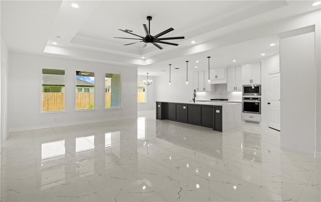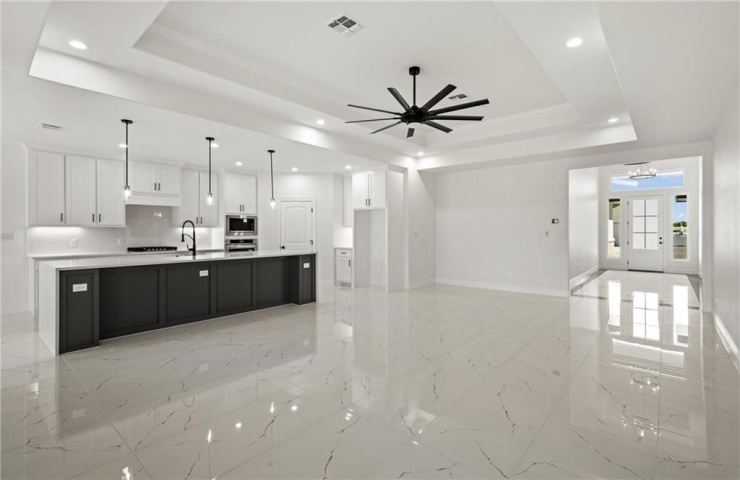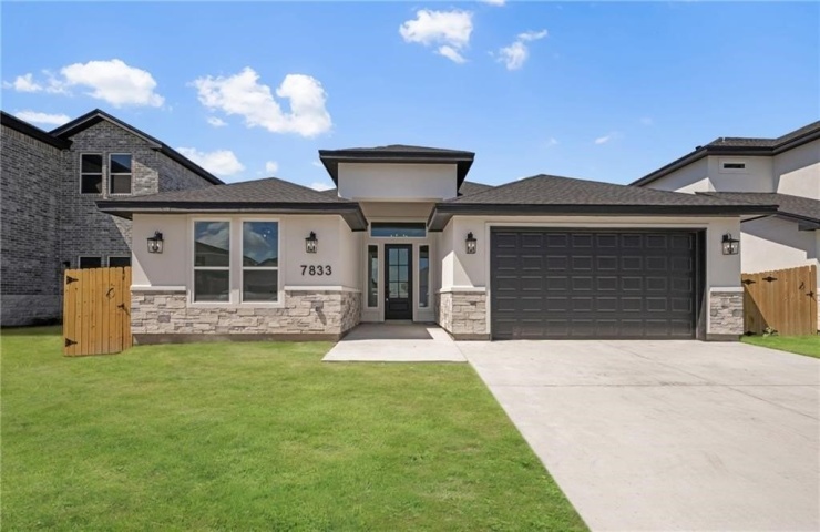 Property Description: Discover 7833 Leylah Drive, a stunning new 4-bedroom, 3-bathroom home in the heart of Corpus Christi's lively Southside. Spanning 2,602 square feet, this modern residence boasts sleek black-and-white finishes, abundant natural light, and an open, airy layout. Enter through a grand foyer with soaring 14-foot ceilings, leading to a guest suite with its own en-suite bathroom on the right. The spacious kitchen features a large walk-in pantry, a 4x11 quartz waterfall island, and maple cabinets with soft-close doors and drawers extending to the ceiling. The expansive primary suite, over 17.5 feet wide, includes a luxurious walk-in shower with a rain showerhead, bench seating, dual vanities, and a generous walk-in closet with built-in dressers and shoe shelves. Outside, enjoy a fully equipped outdoor kitchen with a gas line, electrical hookup for a mini-fridge, black granite countertops, and a sink. Move-in ready-schedule a tour today!